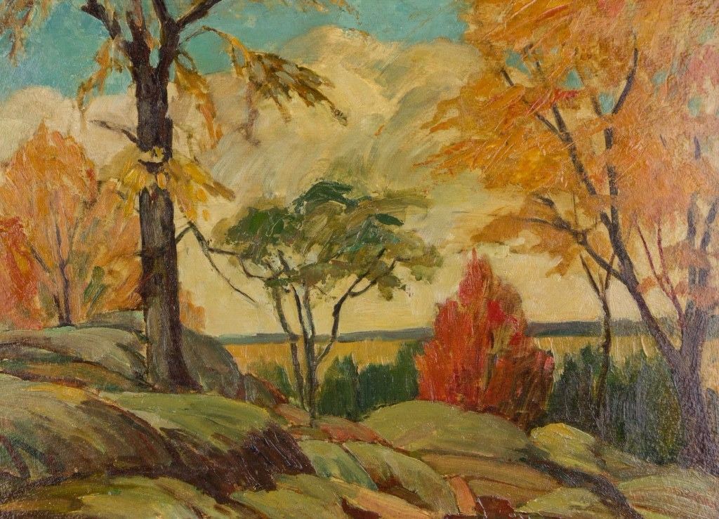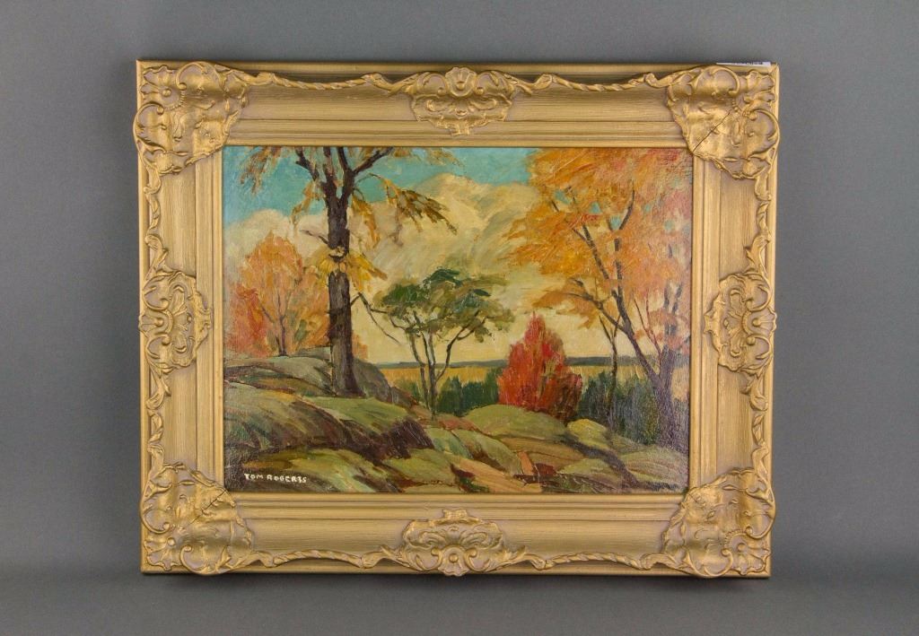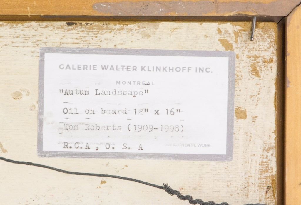 Autumn Landscape; oil on board; framed; signed Thomas Keith Roberts (1909-1998), Canadian painter, member of Ontario Society of Artists and Royal Canadian Academy of Arts; 12 inches x 16 inches