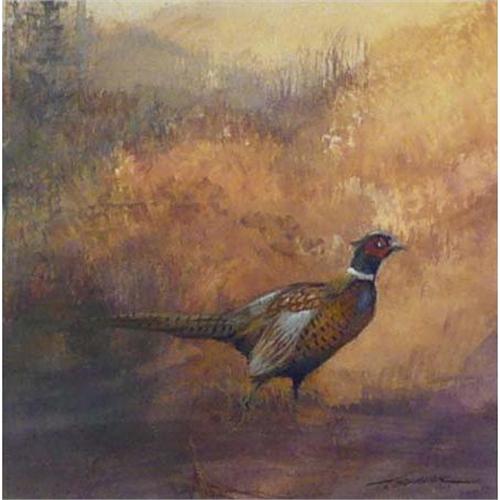 2291 Tom Sander, Gouache Pheasant Cock Signed lower right 7 1/2" x 8"