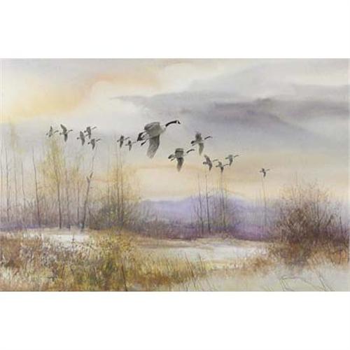 7578 Tom Sander, Watercolor Geese in Flight Signed lower right 18 1/2" x 27 1/2"