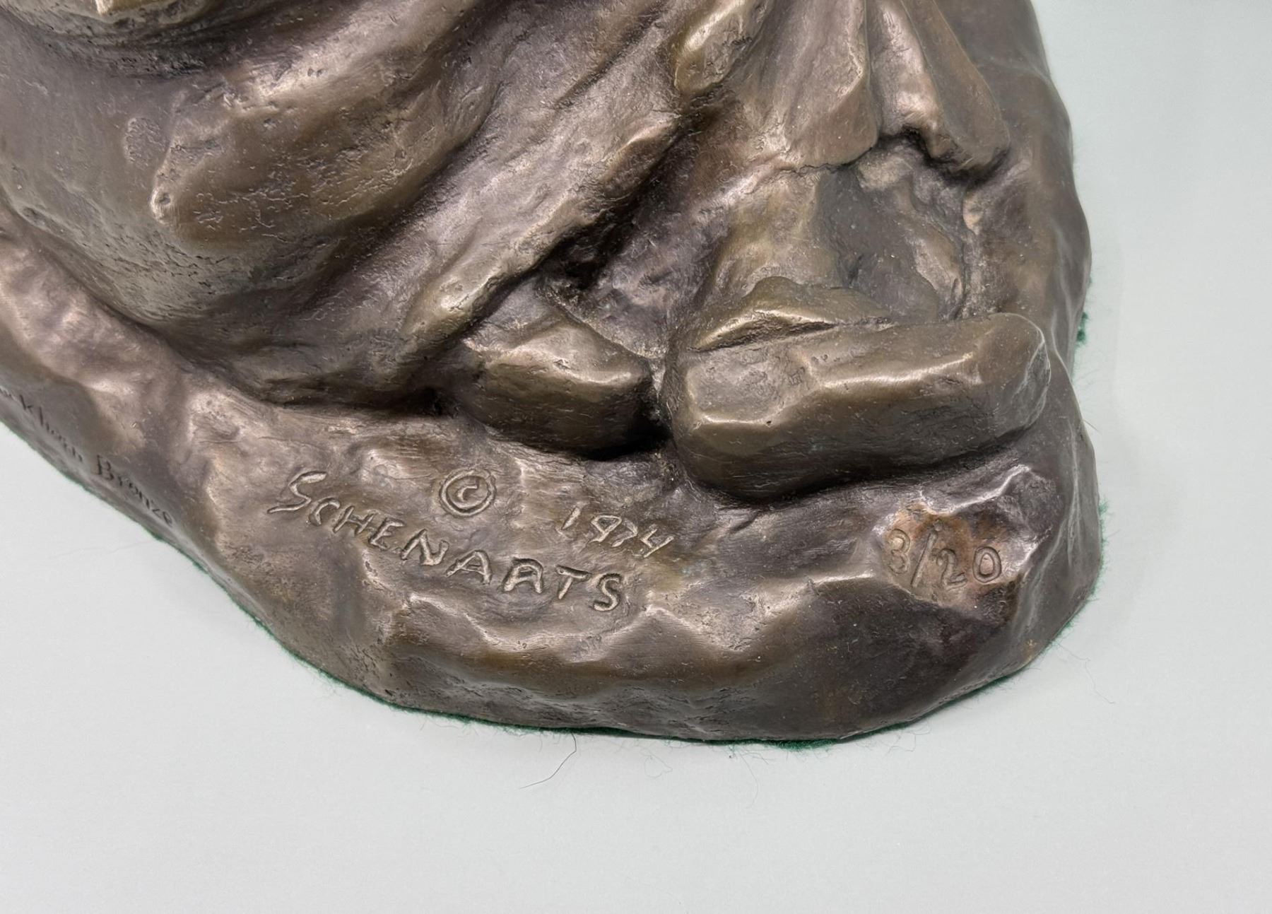 12" wide by 8 1/4" tall by 8 3/4" deep. Tom Schenarts (20th/21st. Century) was active/lived in Montana. Tom Schenarts is known for Painting/sculpture.
