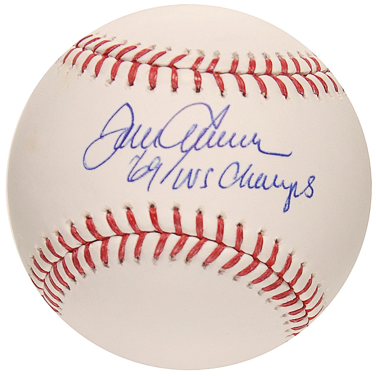 Official Rawlings Major League baseball signed in blue ballpoint on the sweet spot, “Tom Seaver 69 WS Champs.” In very fine condition.