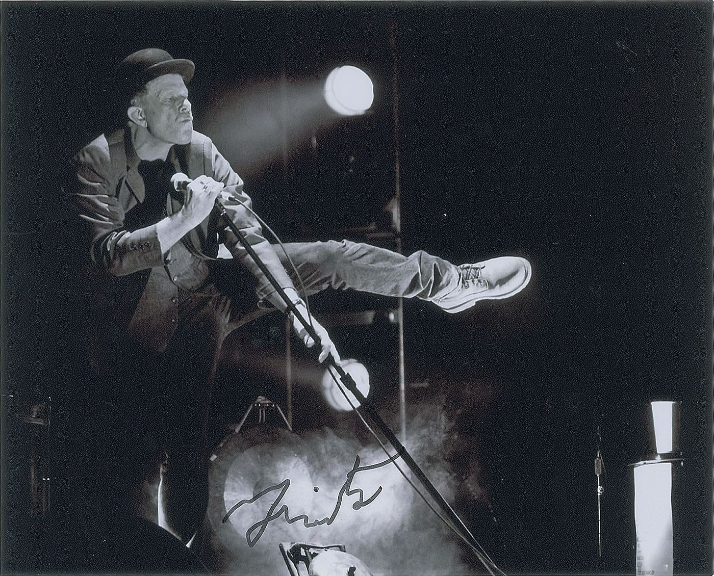 Satin-finish 9.75 x 8 full-length photo of Waits during an energetic live performance, signed in black felt tip. In fine condition.
