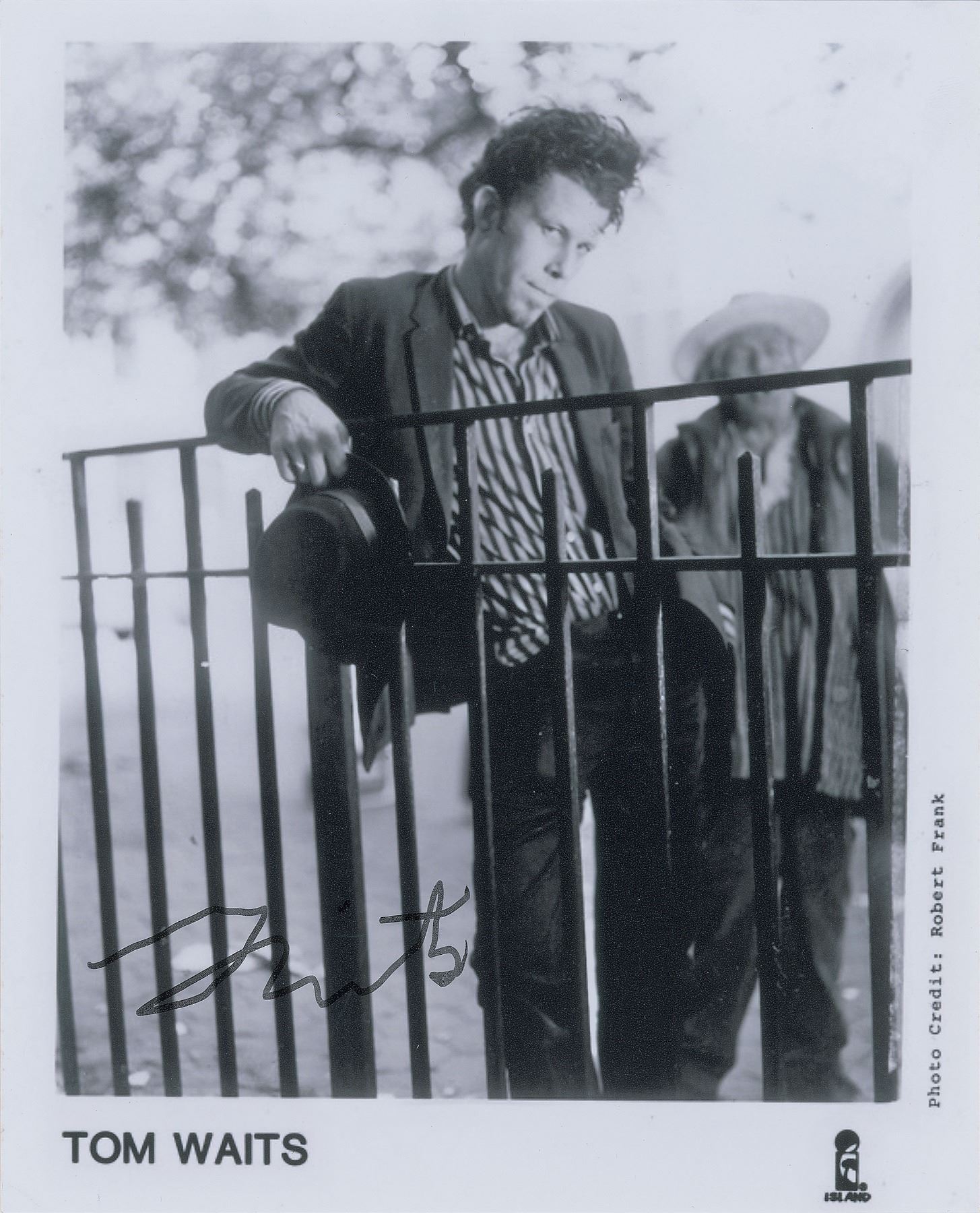 Satin-finish 8 x 10 photo of Waits for an Island Records publicity photo, signed in black felt tip by Waits. In fine condition.
