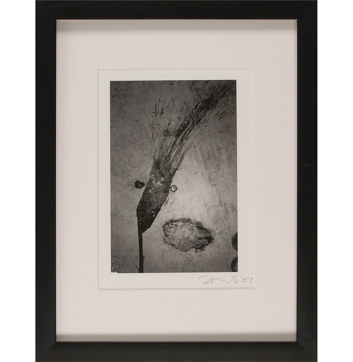 Uncommon print of one of Waits’s original works, 5.5 x 8, picturing an oil stain and signed in the lower border in pencil, “Tom Waits ‘07.” Matted and framed to an overall size of 10 x 13. In fine condition. This is only the second of his private photos to ever be offered to the public.