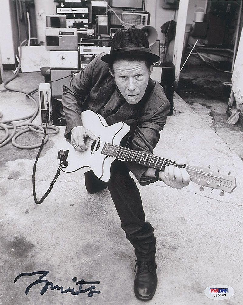 Glossy 8 x 10 photo of Waits mugging for the camera in a recording studio, signed in black felt tip. A PSA/DNA authentication label affixed to lower right corner, otherwise very fine condition. Accompanied by a certificate of authenticity from PSA/DNA.