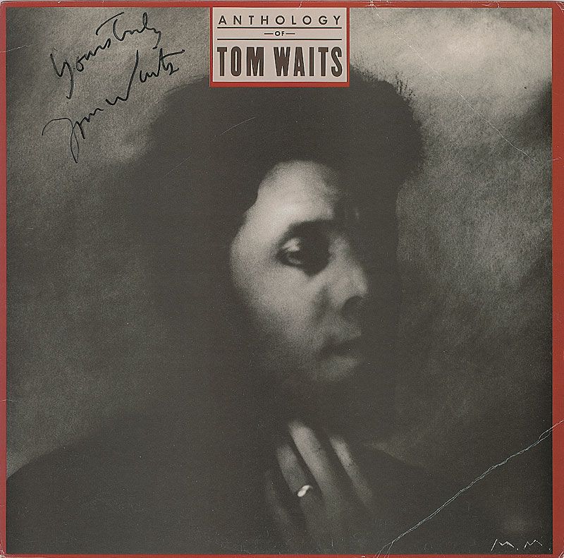 Anthology of Tom Waits album signed on the front cover in black felt tip, “Yours truly, Tom Waits.” Diagonal creases to two corners, otherwise fine condition. The record is included. Album originates from the collection of Glenn Goldman, owner of the Book Soup bookstore in West Hollywood, California.