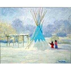 Tom Waugh (b.1948). Oil on board. "Collecting Wood." 16" x 20". Estimate $1,000-$1,200.