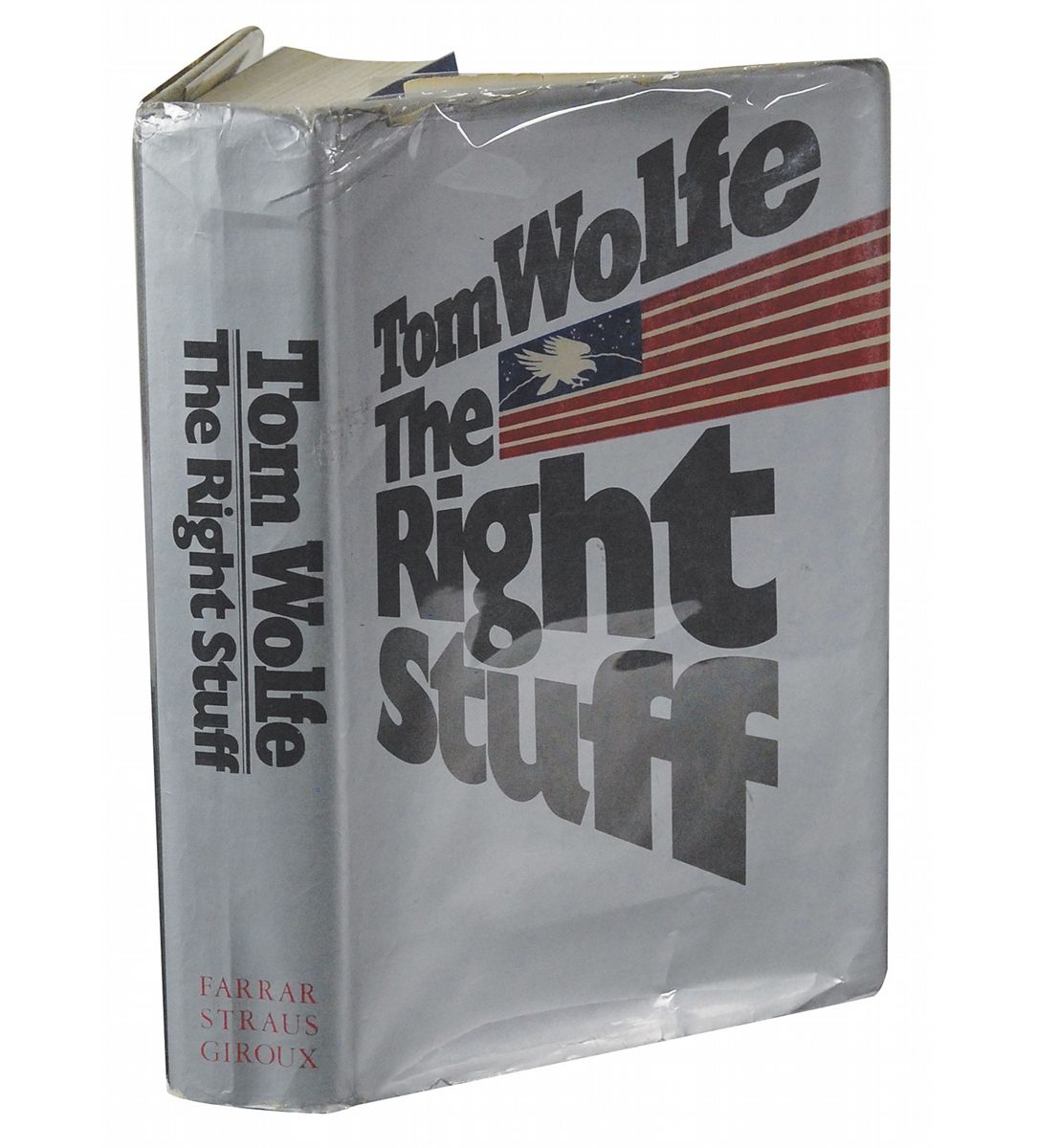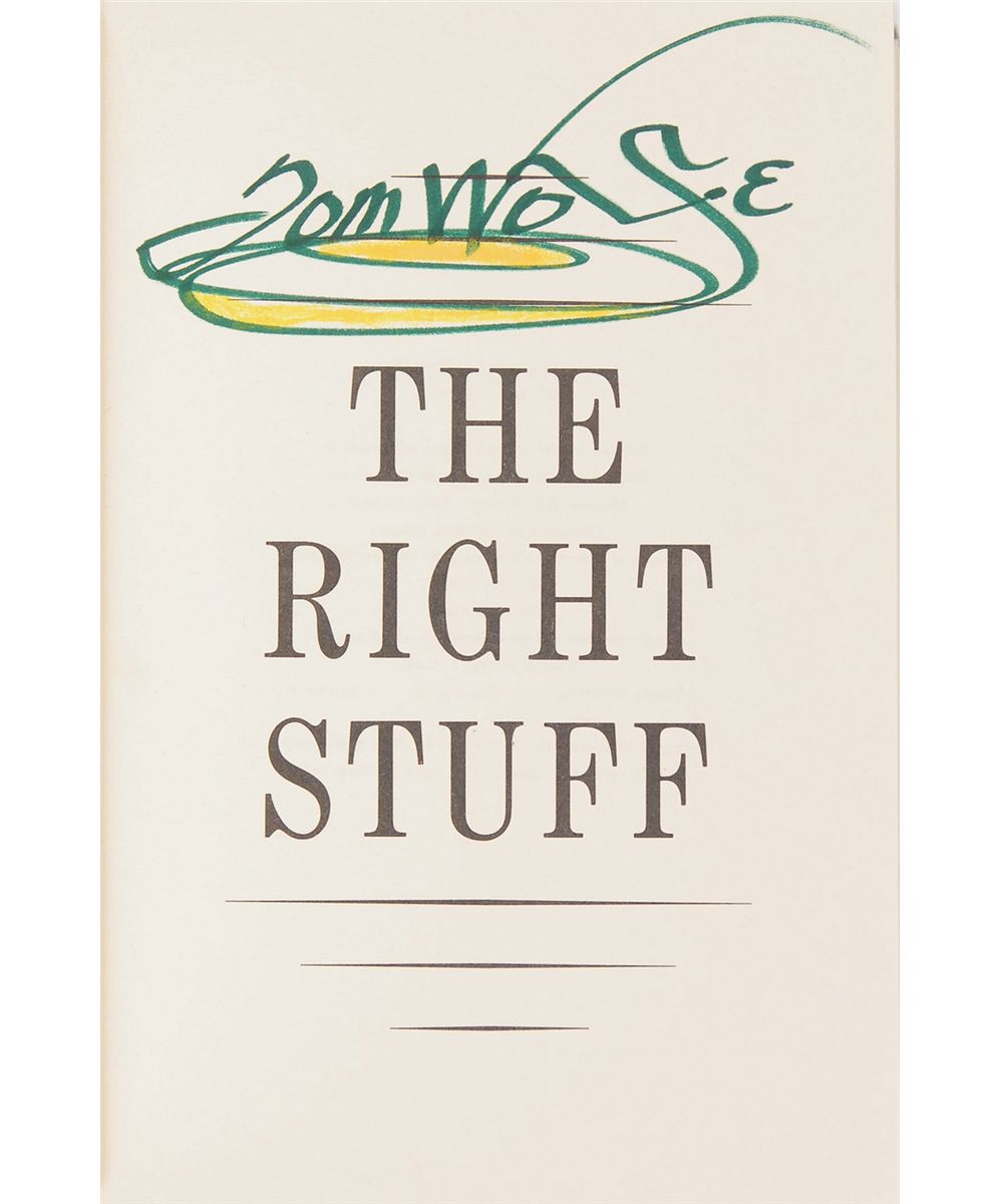Signed book: The Right Stuff. First edition. NY: Farrar, Straus, Giroux, 1979. Hardcover with dust jacket, 5.75 x 8.5, 436 pages. Signed on the title page in green and yellow felt tip. In fine condition, with some edgewear to dust jacket and foxing to textblock edges.