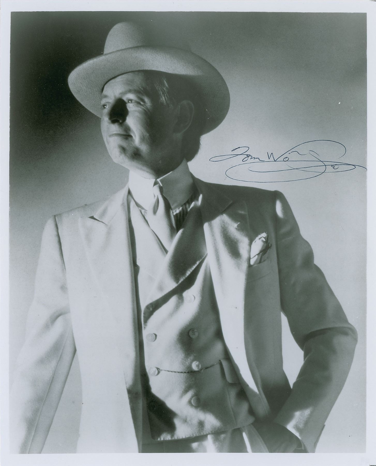 American author and journalist (1930–2018) best known for his books The Electric Kool-Aid Acid Test, The Right Stuff, and The Bonfire of the Vanities. Glossy 8 x 9.75 half-length photo of Tom Wolfe wearing a stylish suit and hat, signed in black ballpoint. In very fine condition.
