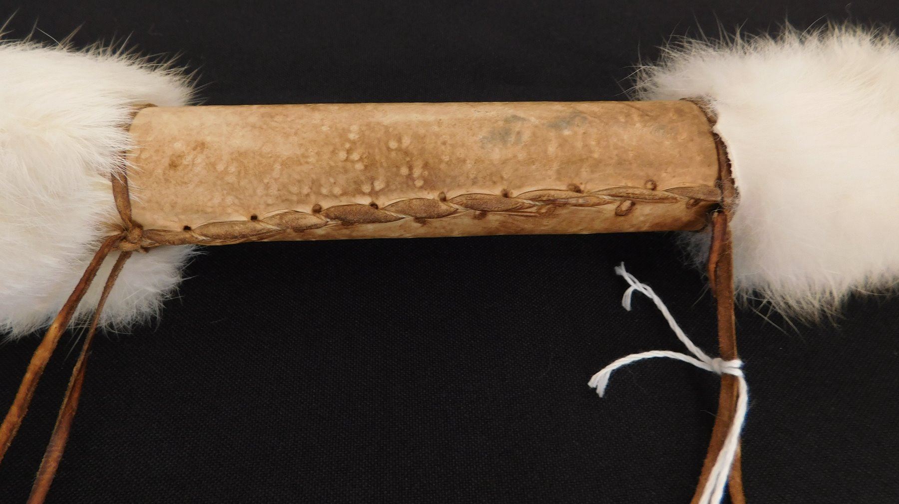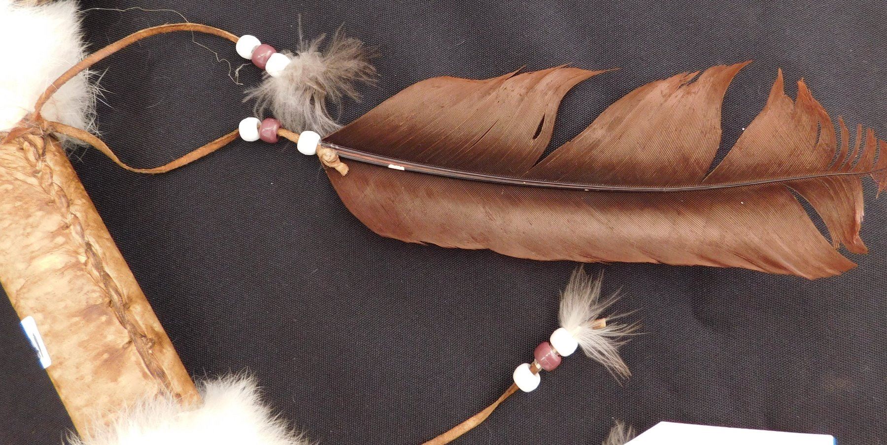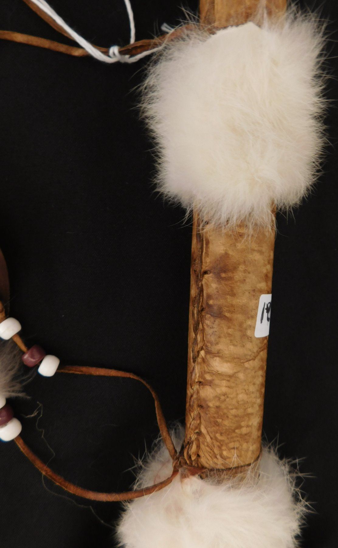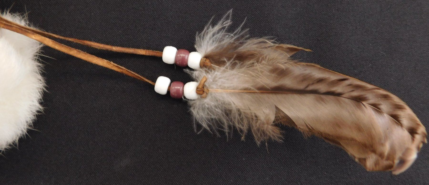 Tom-a-hawk Dance Club, c. 1960s. Made of stone, wood, feathers and rawhide, the item measures approx. 18.5" x 5" x 2". Sioux, South Dakota. The flint head measures 5" x 2 1/4". Condition: Good, see images. Shipping: $30.00 w/insurance and signature, due to length.