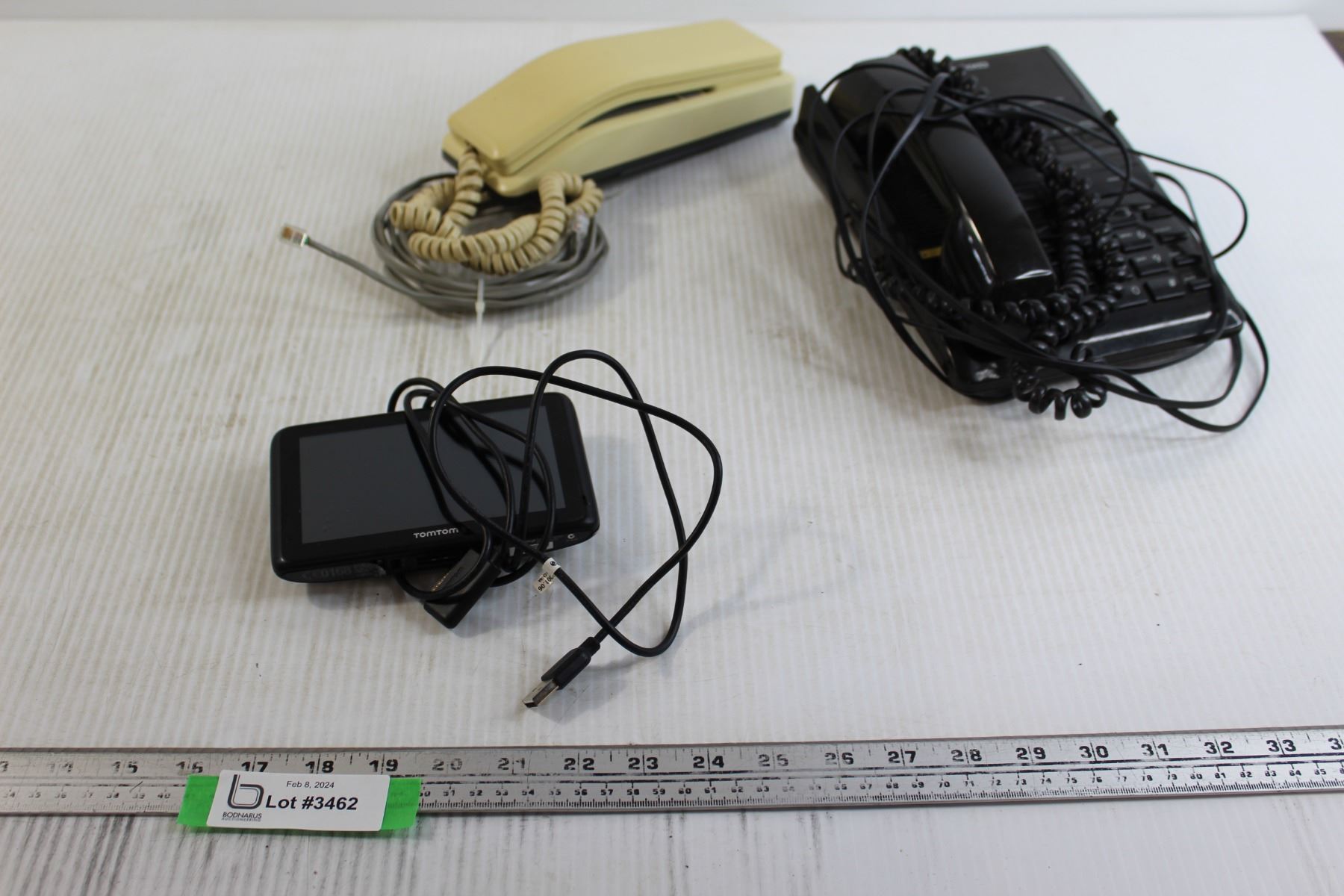 Tom-tom GPS - Works When Plugged In, May Have to Hold On Button foot 10 Secs; (2) Phones - Both Work, Black Phone's Answering Machine Needs 9-Volt Adapter and Mini Tape