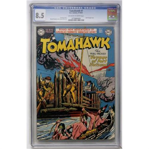 <B>Tomahawk #7 (DC, 1951) CGC VF+ 8.5 Off-white to white pages.</B></I> Fred Ray cover. Bruno Premiani and Leonard Starr art. Last 52 page issue. Overstreet 2007 VF 8.0 value = $198; VF/NM 9.0 value = $307. CGC census 6/07: 1 in 8.5, 2 higher. <I>From the Keith Marlow Collection.</B></I><BR><BR><b>Shipping:</b> Comics - Slabbed (certified) (<a target="_blank" href="http://www.heritageauctions.com/common/shipping.php">view shipping information</a>)