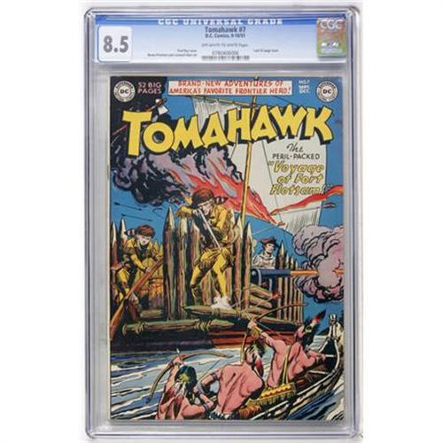 <B>Tomahawk #7 (DC, 1951) CGC VF+ 8.5 Off-white to white pages.</B></I> Fred Ray cover. Bruno Premiani art. Last 52 page issue. Overstreet 2007 VF 8.0 value = $198; VF/NM 9.0 value = $307. CGC census 1/08: 2 in 8.5, 2 higher. <I>From the Fantastic Frank Collection.</B></I><BR><BR><b>Shipping:</b> Comics - Slabbed (certified) (<a target="_blank" href="http://www.heritageauctions.com/common/shipping.php">view shipping information</a>)