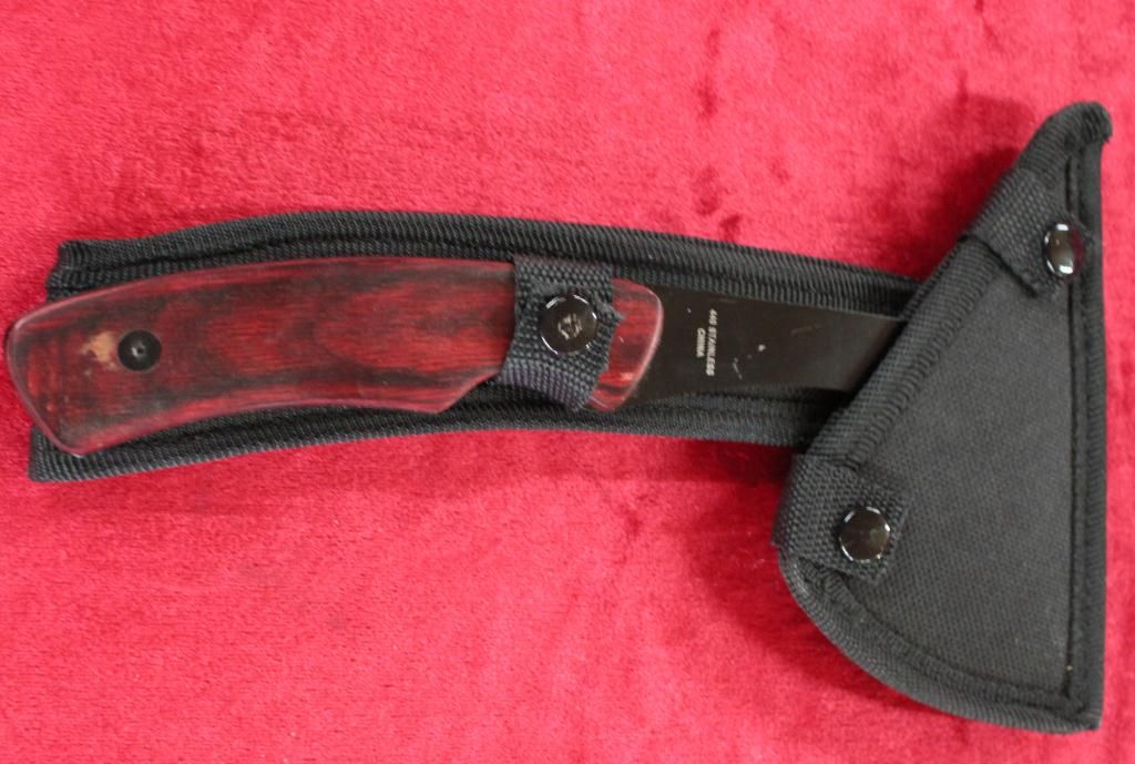 Tomahawk Axe With Burgundy Handle & Nylon Sheath