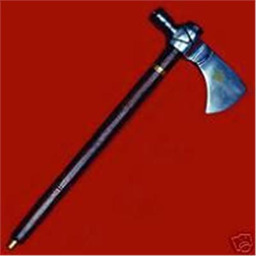 Head features the classic weeping heart in inlaid brass,the handle is fitted with a brass mouth-piece. Pre drilled for smokin. 13-1/2" Hand Forged.by authentic aboriginal