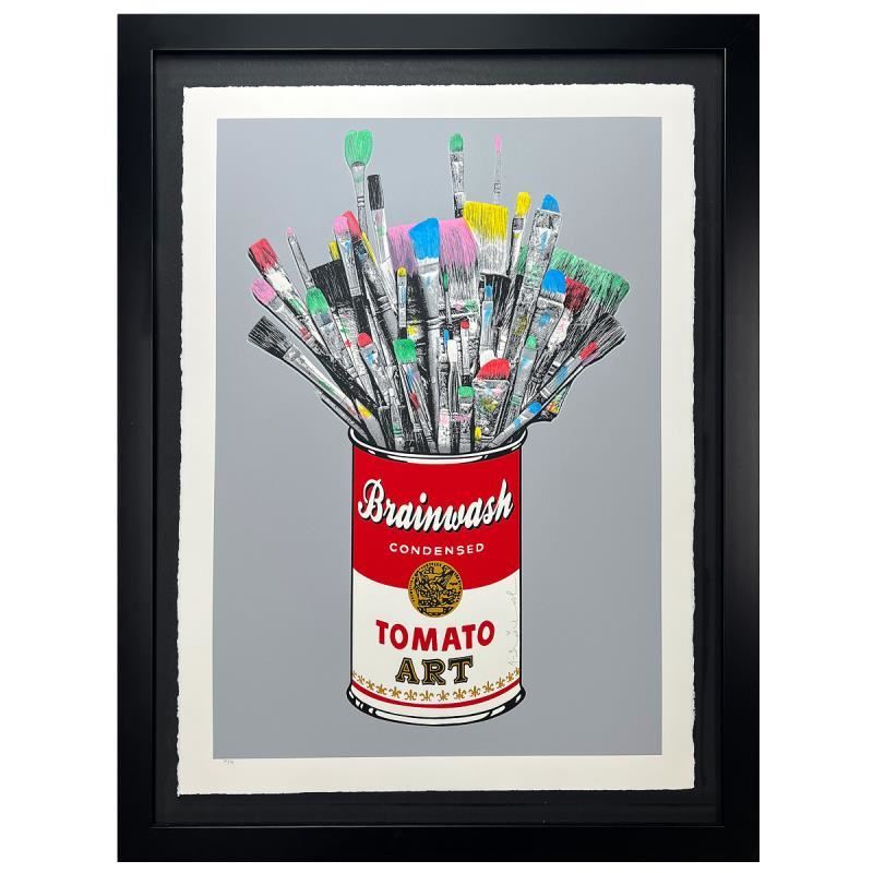 "Tomato Pop (Grey)" is a limited edition uniquely hand-finished silk screen print on paper by Mr Brainwash. The piece is hand signed and thumb-printed by the artist. The piece comes custom framed and with a Certificate of Authenticity. Measures approximately 42" x 34" (framed) 30" x 22" (image).