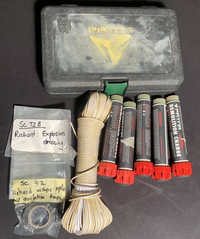 The lot consists of a patina box, a patina dance set, a cord, electrical tape and 5 demolition charge tubes.