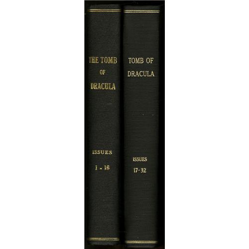 <B>Tomb of Dracula #1-32 Bound Volumes (Marvel, 1972-75).</B></I> Trimmed copies of #1-32 bound into two black hardcover volumes. Included are the first appearances of Dracula (#1) and Blade the Vampire Slayer (#10). Pages show tanning, but covers of comics look extremely fresh. Titles and issue numbers are embossed on the spines of the books. Overstreet VG 4.0 value for group = $290.