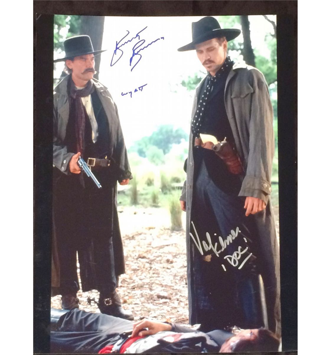 Large color 11x14 signed by Kurt Russell who adds his character name Wyatt and Val Kilmer who added his character name Doc