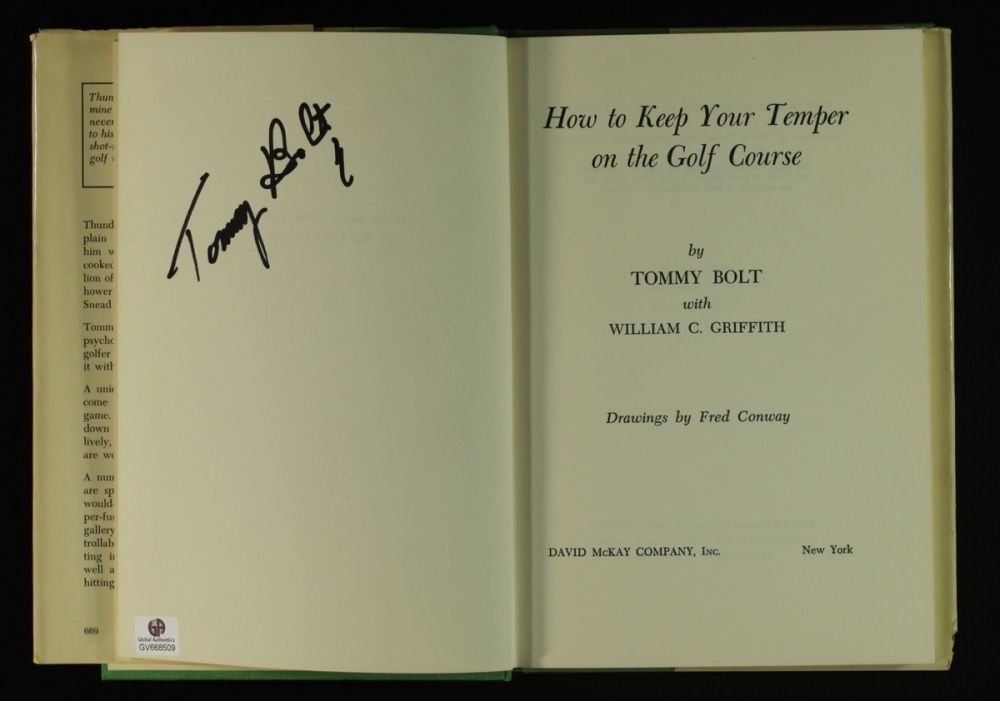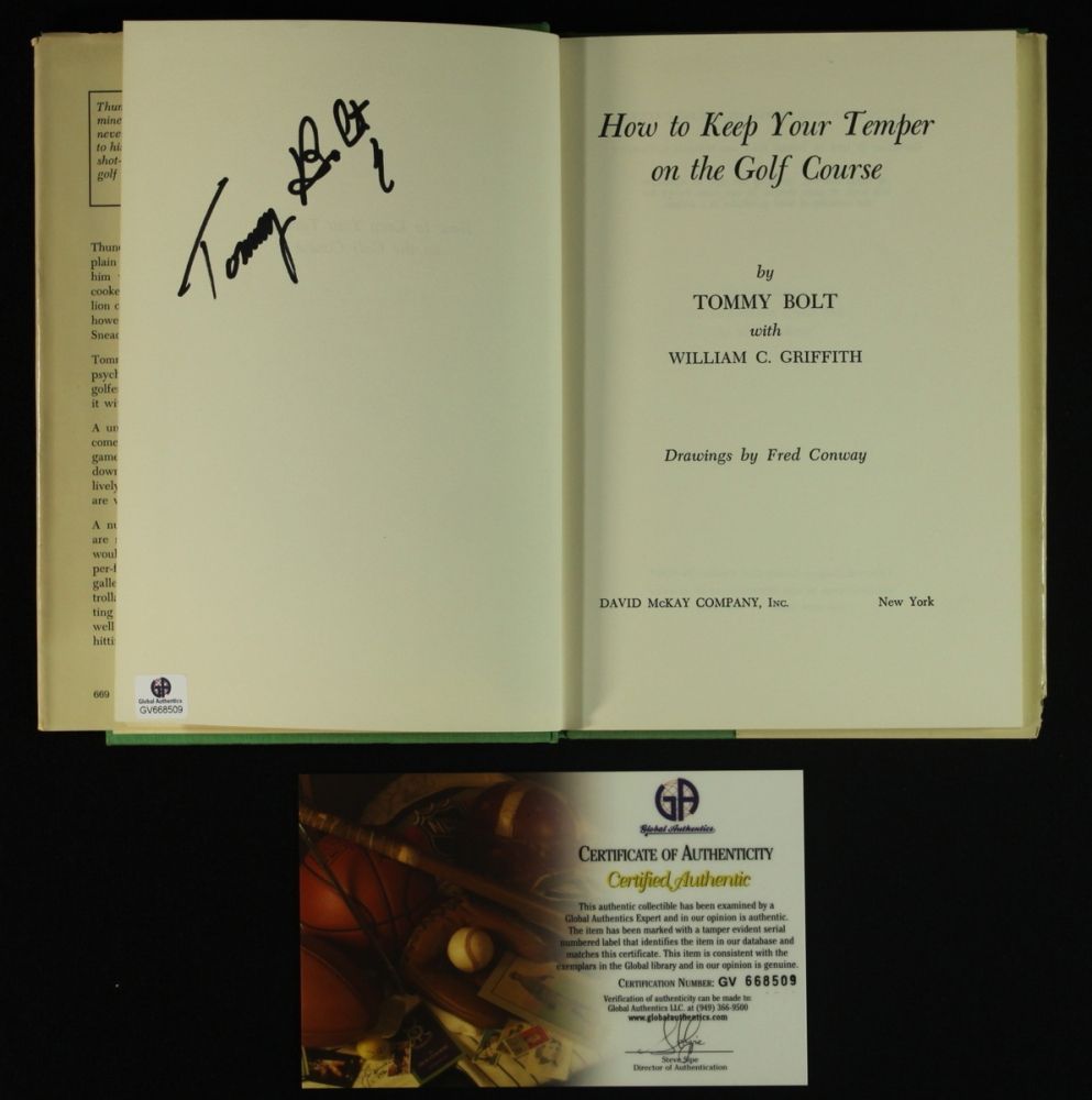 Hand-signed in black felt-tip pen by Tommy Bolt (HOF). Note, the book cover does show some wear, please see photo for details. Includes a Global Authentics (GA) hologram and matching COA for authenticity purposes.