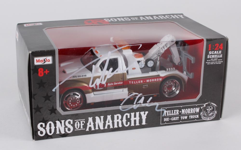 Toy tow truck has been hand-signed and inscribed on the packaging in white paint pen by Tommy Flanagan.