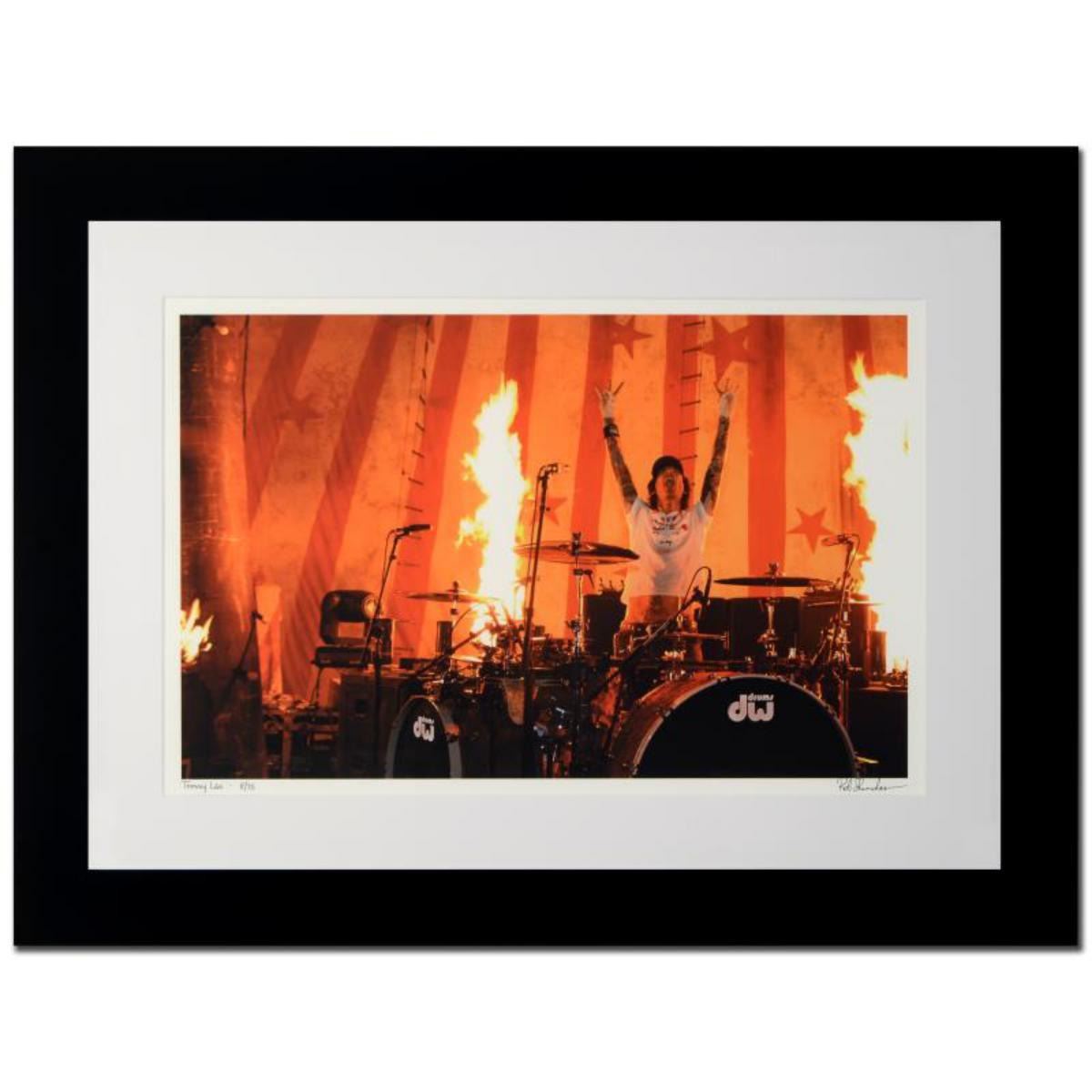 "Tommy Lee" is a limited edition giclee on paper, numbered and hand signed by acclaimed music industry photographer Rob Shanahan. This piece comes custom framed. Includes Certificate of Authenticity. Measures approx. 32" x 25" (with frame), 22" x 14" (image). Reference #: 237498.