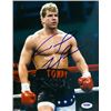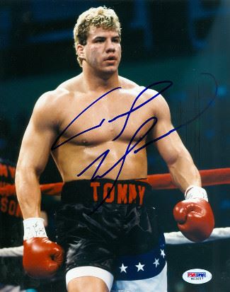 Tommy Morrison, nicknamed The Duke, was an American heavyweight boxer and a former World Boxing Organization champion. He lost only three out of a total of 52 professional fights. Morrison appeared in the 1990 Sylvester Stallone boxing film Rocky V. Morrison retired from boxing in 1996. He died on September 1, 2013. Tommy Morrison has hand signed this 8x10 Photo. PSA Hologram and Certificate of Authenticity.