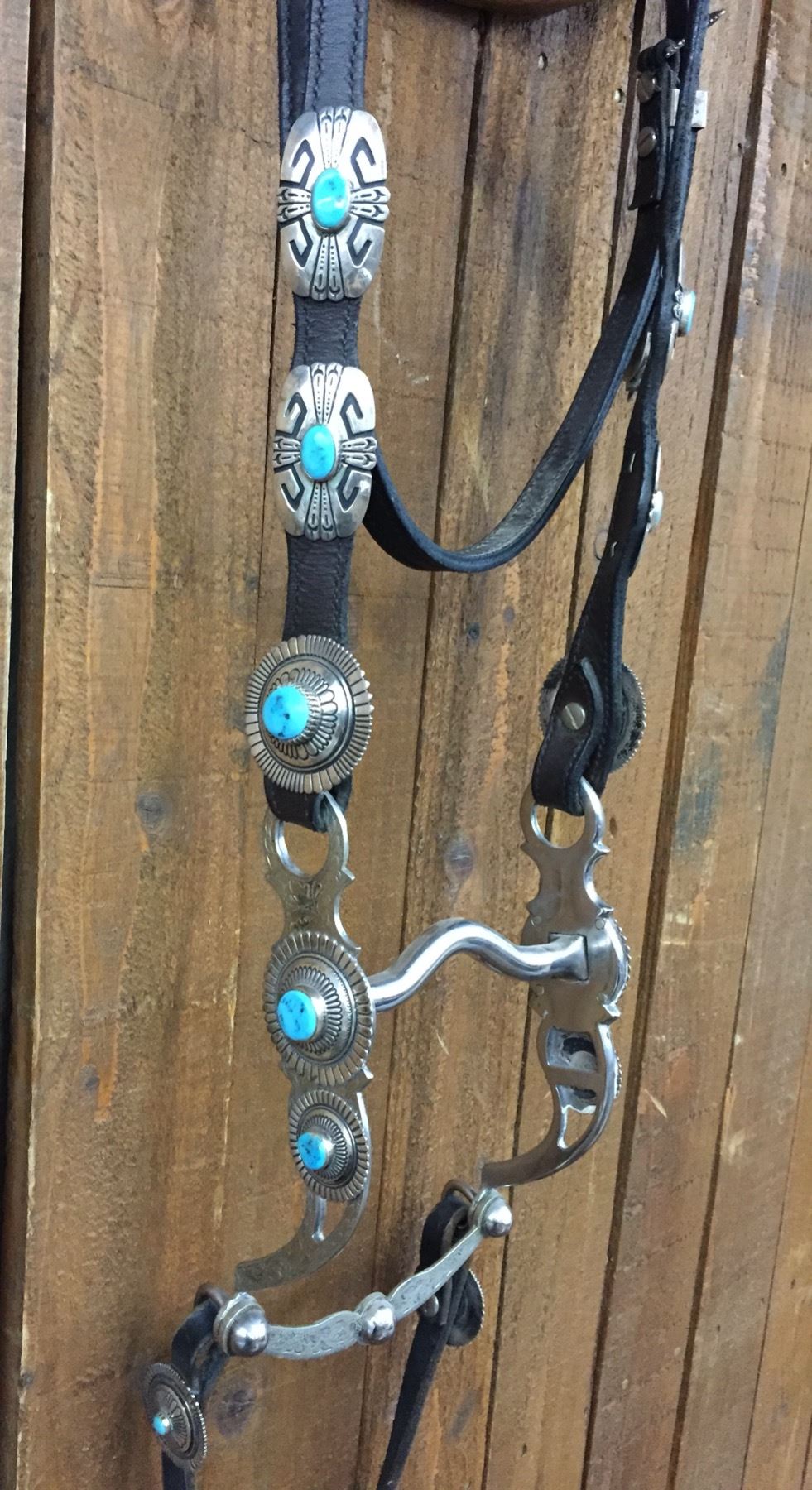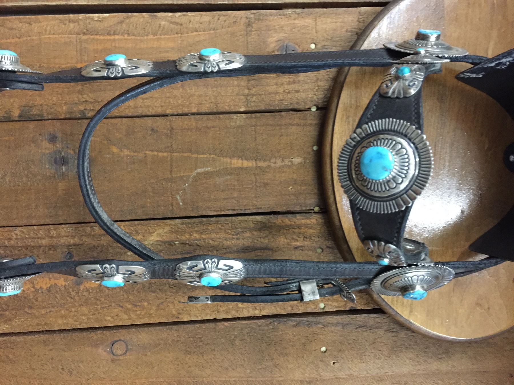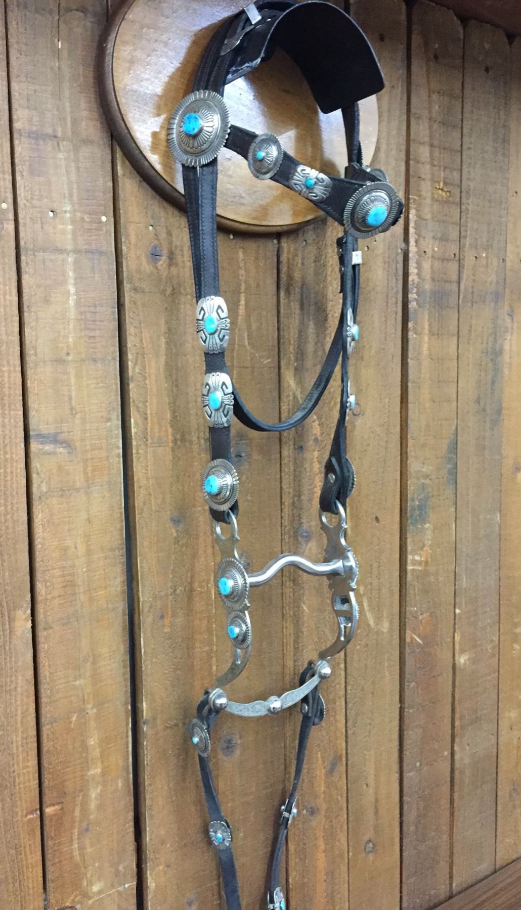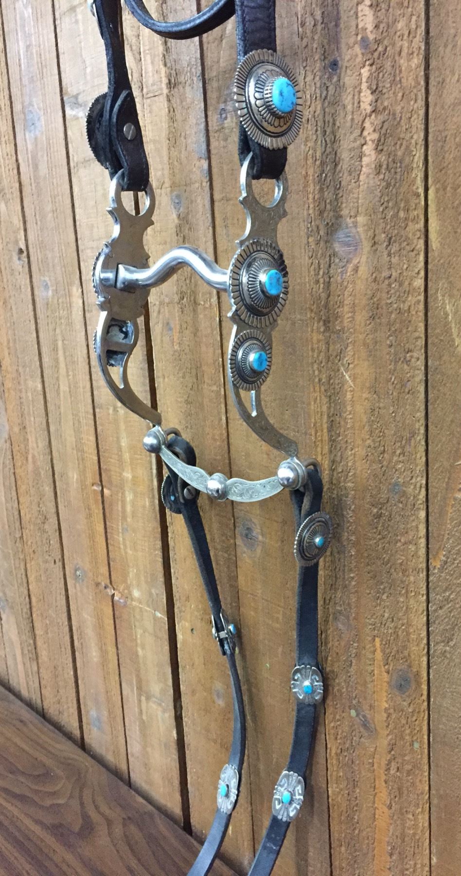 Description: For your pleasure we offer for sale this gorgeous, dark leather saddle with sterling silver conchos that feature nugget style turquoise in the center of each one. The Saddle comes with matching headstall, bit and breast collar along with a framed letter detailing its origins. There is a photo of Tommy Singer and the saddle to display with the masterpiece! According to the paperwork and previous owner, this came out of the Gene Autry Museum in California. Original price on this saddle was reportedly $50,000! James Barton and Brent Joe are also two of the Navajo Silversmiths who have been identified as working on this GREAT saddle! These two men worked for Tommy Singer. There are over 130 PIECES of individually crafted pieces of silver on this set, most of which have turquoise settings!