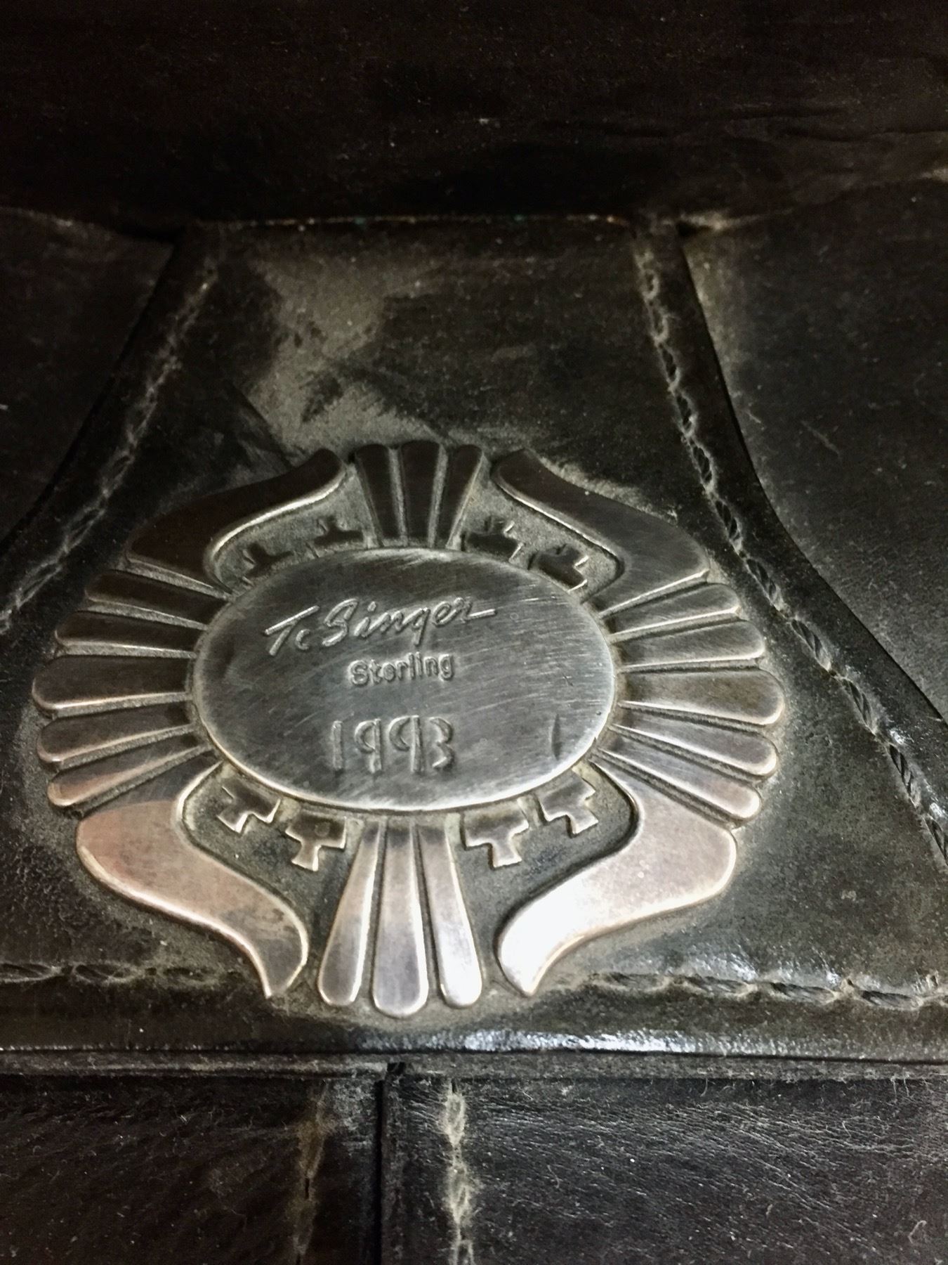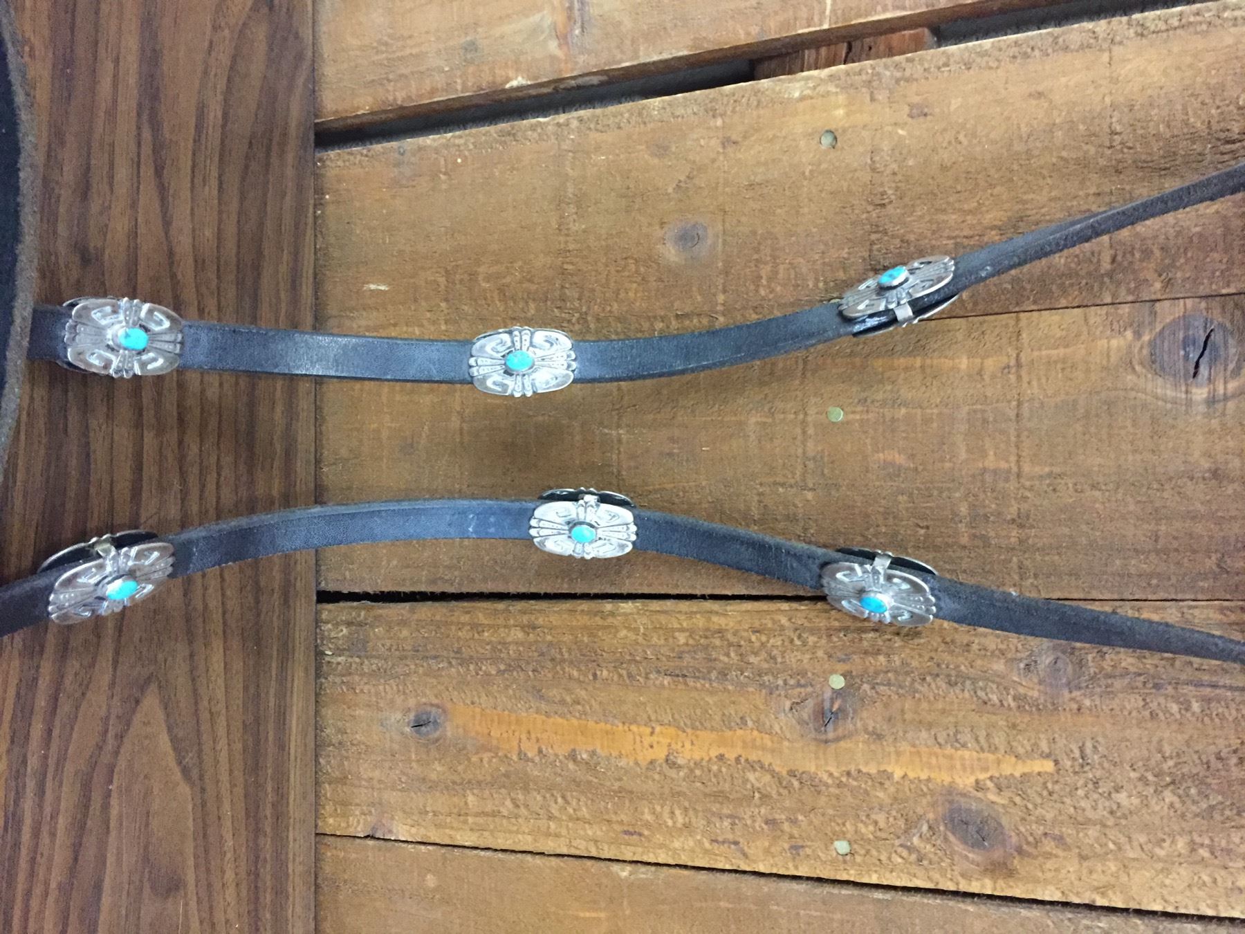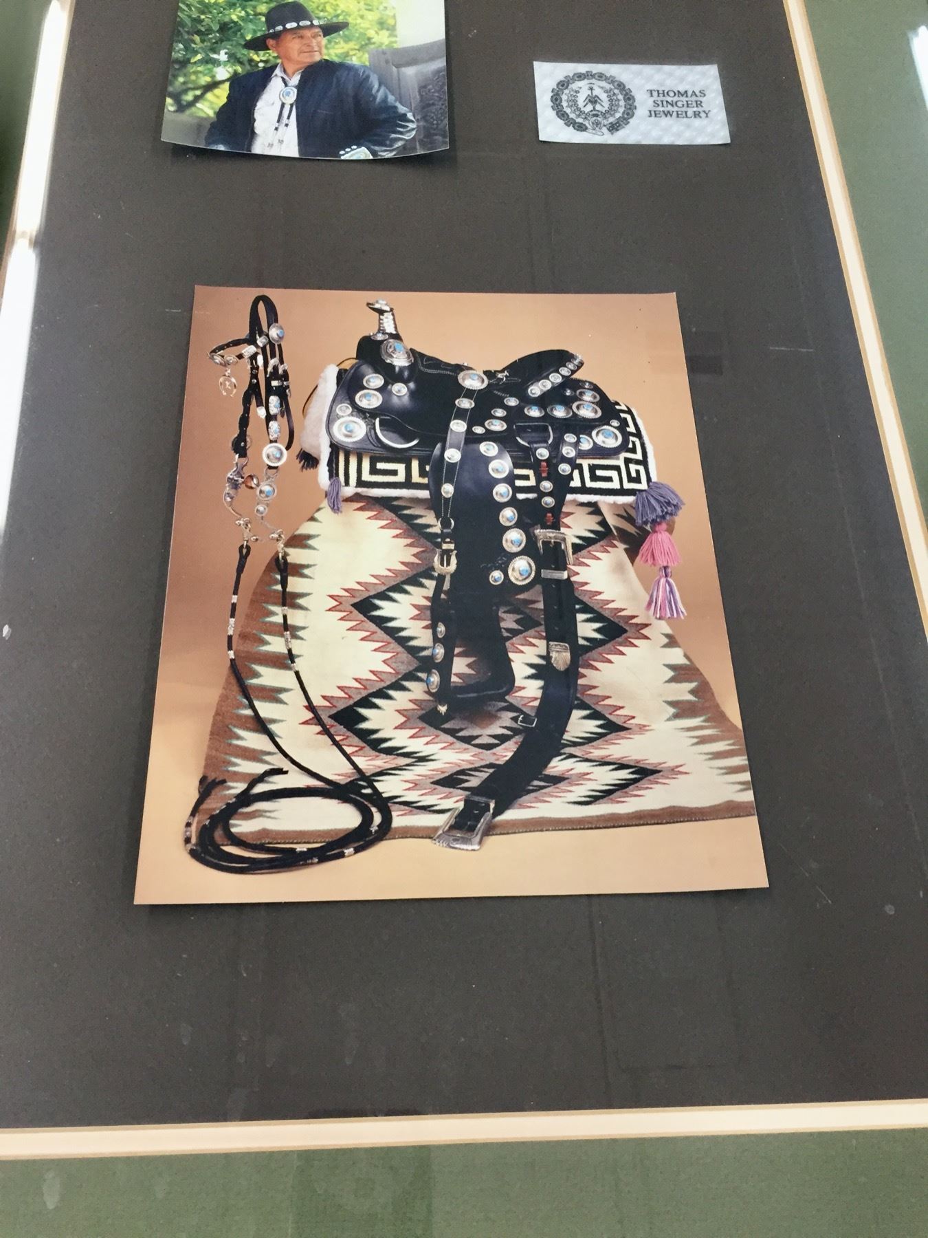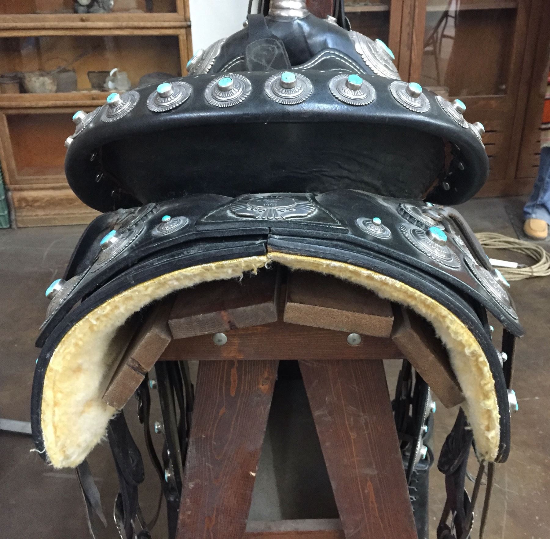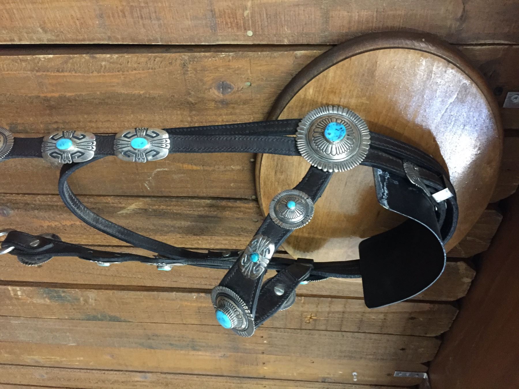 Description: For your pleasure we offer for sale this gorgeous, dark leather saddle with sterling silver conchos that feature nugget style turquoise in the center of each one. The Saddle comes with matching headstall, bit and breast collar along with a framed letter detailing its origins. There is a photo of Tommy Singer and the saddle to display with the masterpiece! According to the paperwork and previous owner, this came out of the Gene Autry Museum in California. Original price on this saddle was reportedly $50,000! James Barton and Brent Joe are also two of the Navajo Silversmiths who have been identified as working on this GREAT saddle! These two men worked for Tommy Singer. There are over 130 PIECES of individually crafted pieces of silver on this set, most of which have turquoise settings!