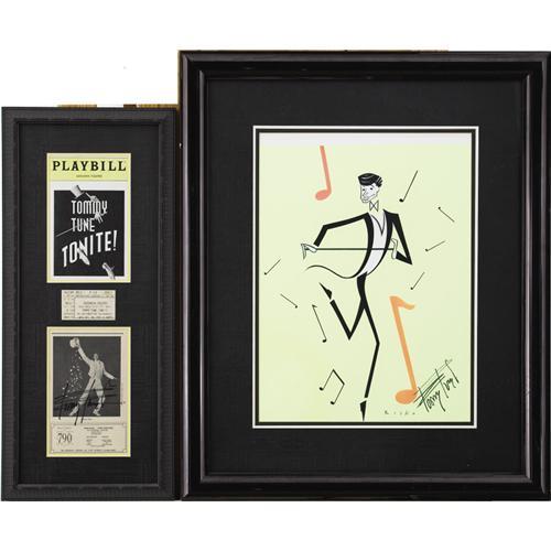 <B>Tommy Tune Signature Ensemble.</B></I> Featured is a dinner theatre handbill signed by singer-dancer Tommy Tune and matted and framed along with a ticket stub and <I>Playbill</B></I> for "Tommy Tune Tonight" to an overall size of 11" x 25.5". Also included in this lot is an autographed poster signed by Tune in black marker and framed to an overall size of 24" x 29". All items are in Excellent condition. <I>With COA from PSA/DNA.</B></I>