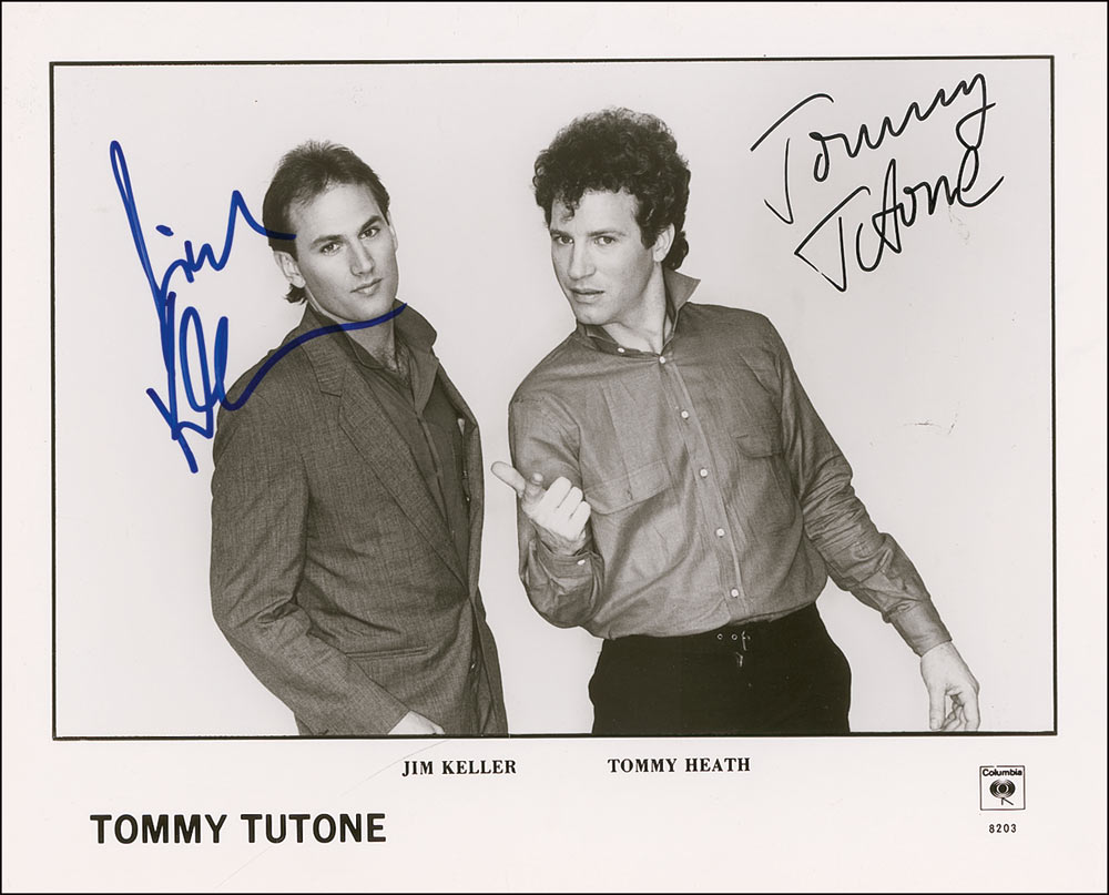 Glossy 10 x 8 Columbia Records publicity photo, signed in blue felt tip, “Jim Keller” and signed in black felt tip, “Tommy Tutone.” In fine condition.