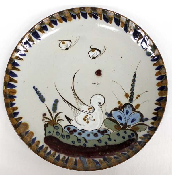 Tonala Bird Plate with Butterflies, measures 13'' W