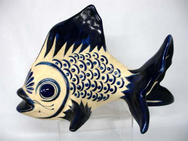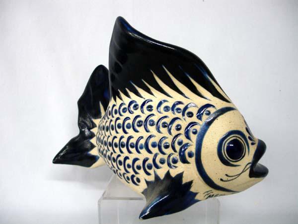 Tonala Ceramic Fish Statute, Jalisco Mexico. Measures 7''Hx11''Lx6.25''W. Buyers Pay Actual Shipping and Handling Charges(see terms and conditions for more information).