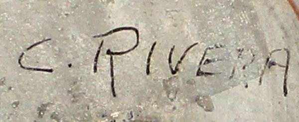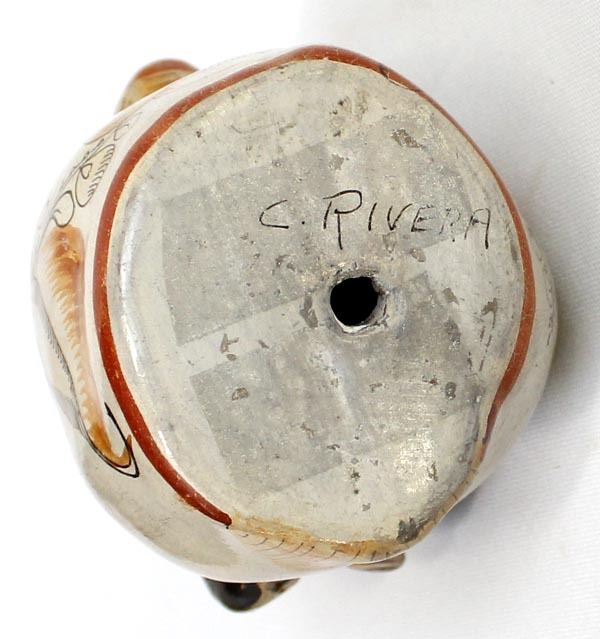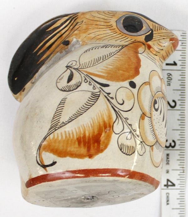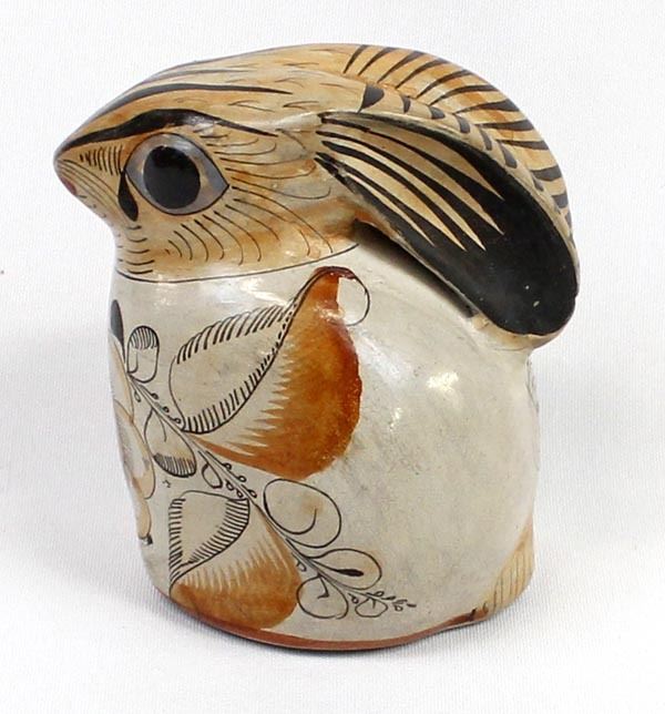 Tonala Jack Rabbit Pottery, by artist C. Rivera, measures 4''