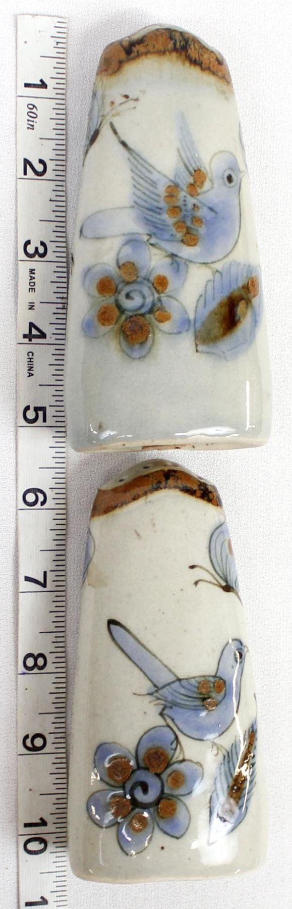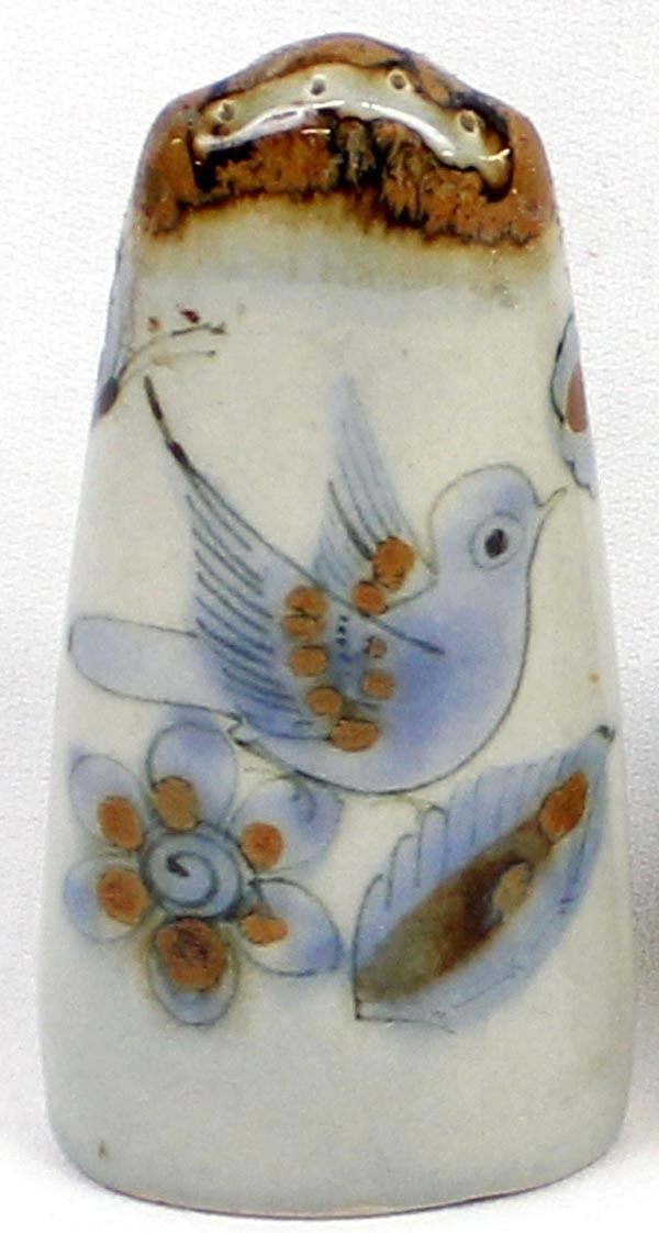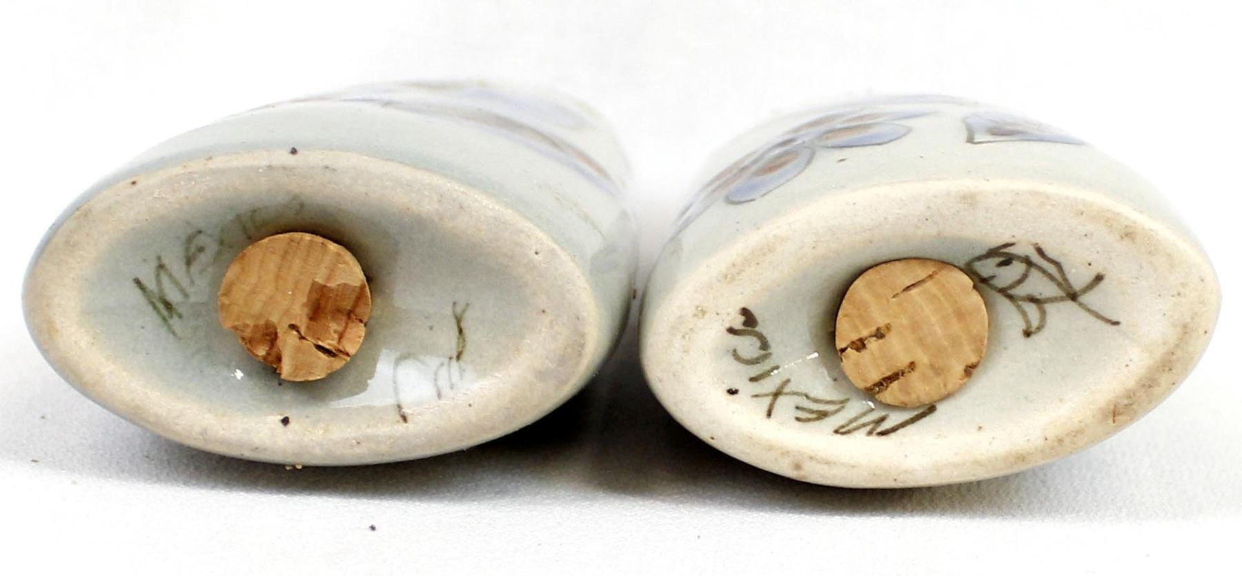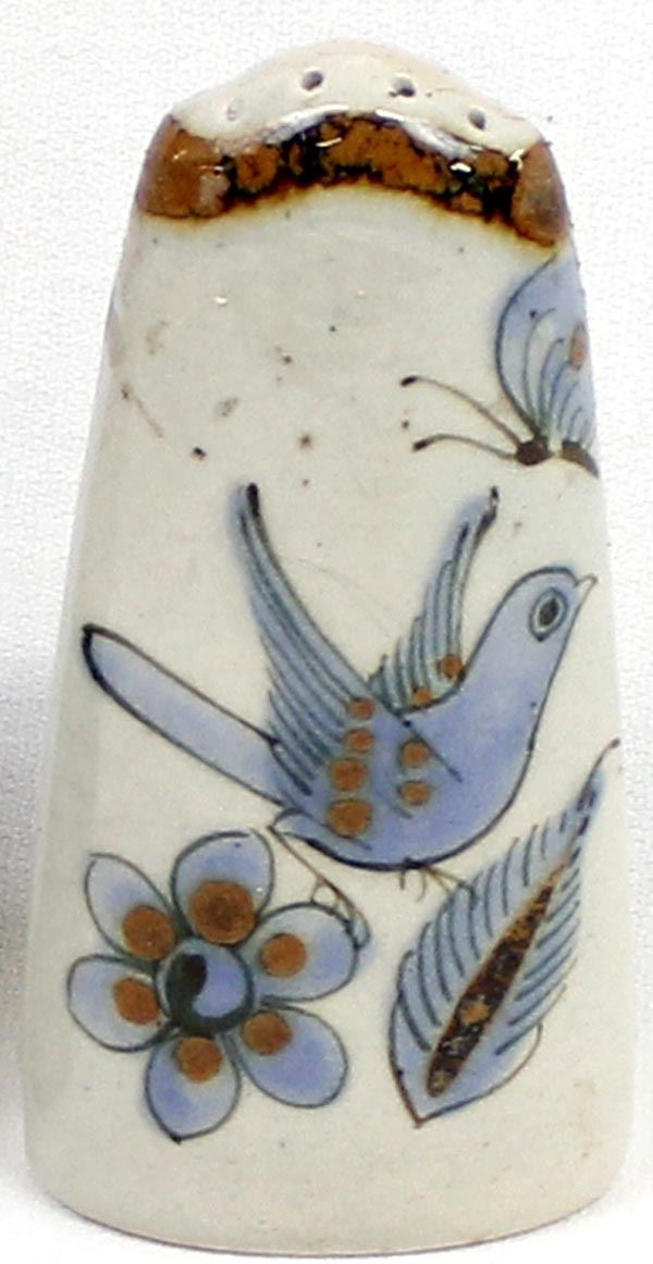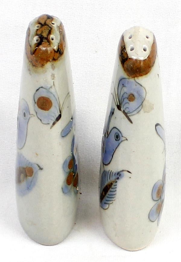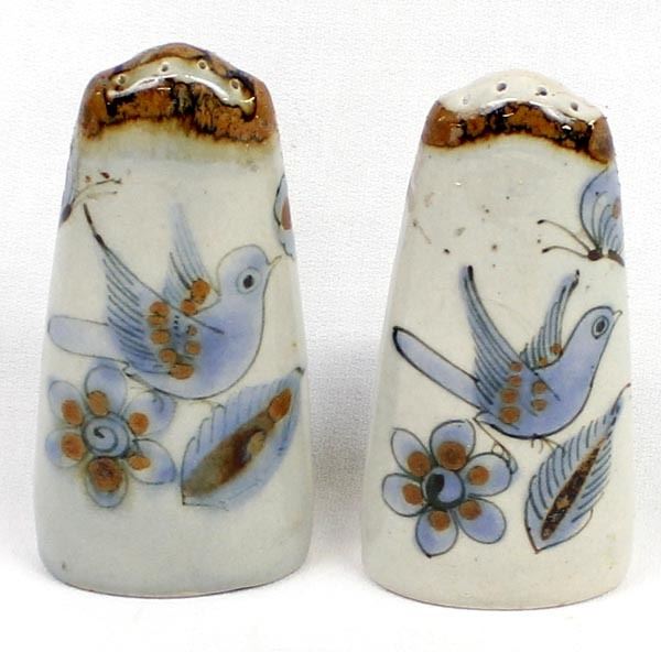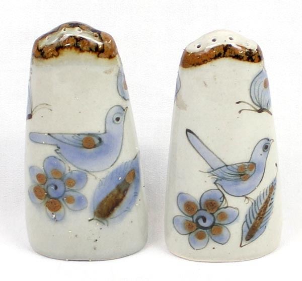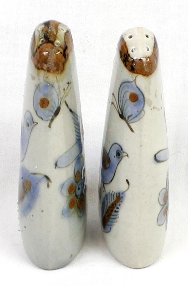 Tonala Ken Edwards El Palomar Pottery Salt & Pepper Shakers, measure 5.25''H x 2.5'' x 1.25'', hallmarked, collectible blue birds and flower motif