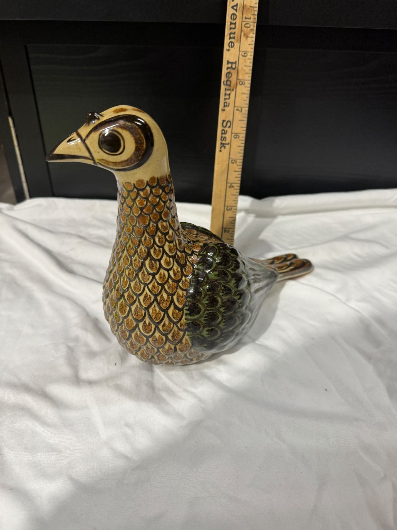 Tonala Mexican Pottery Quail made by Carlos Billanuera