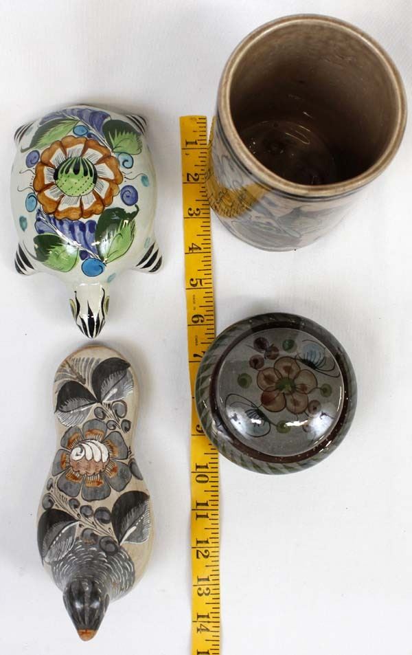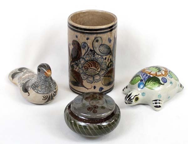Tonala Turtle, Bird, Cylinder & Lidded Bowl