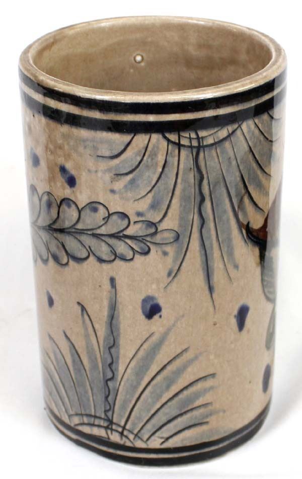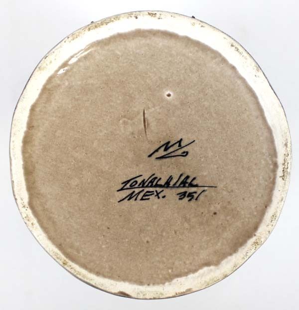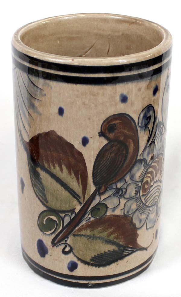 Collection Tonala Turtle, Bird, Cylinder & Lidded Bowl. The cylinder and turtle are marked by the artist. The Cylinder Measures 6 3/4'' tall and is 4'' in diameter.