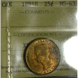 111 - 1881H 25¢ ICCS MS-63 (TOP 10)Toned Coins