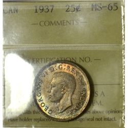 127 - 1937 25¢ ICCS MS-65Toned Coins