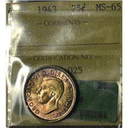 149 - 1943 25¢ ICCS MS-65Toned Coins