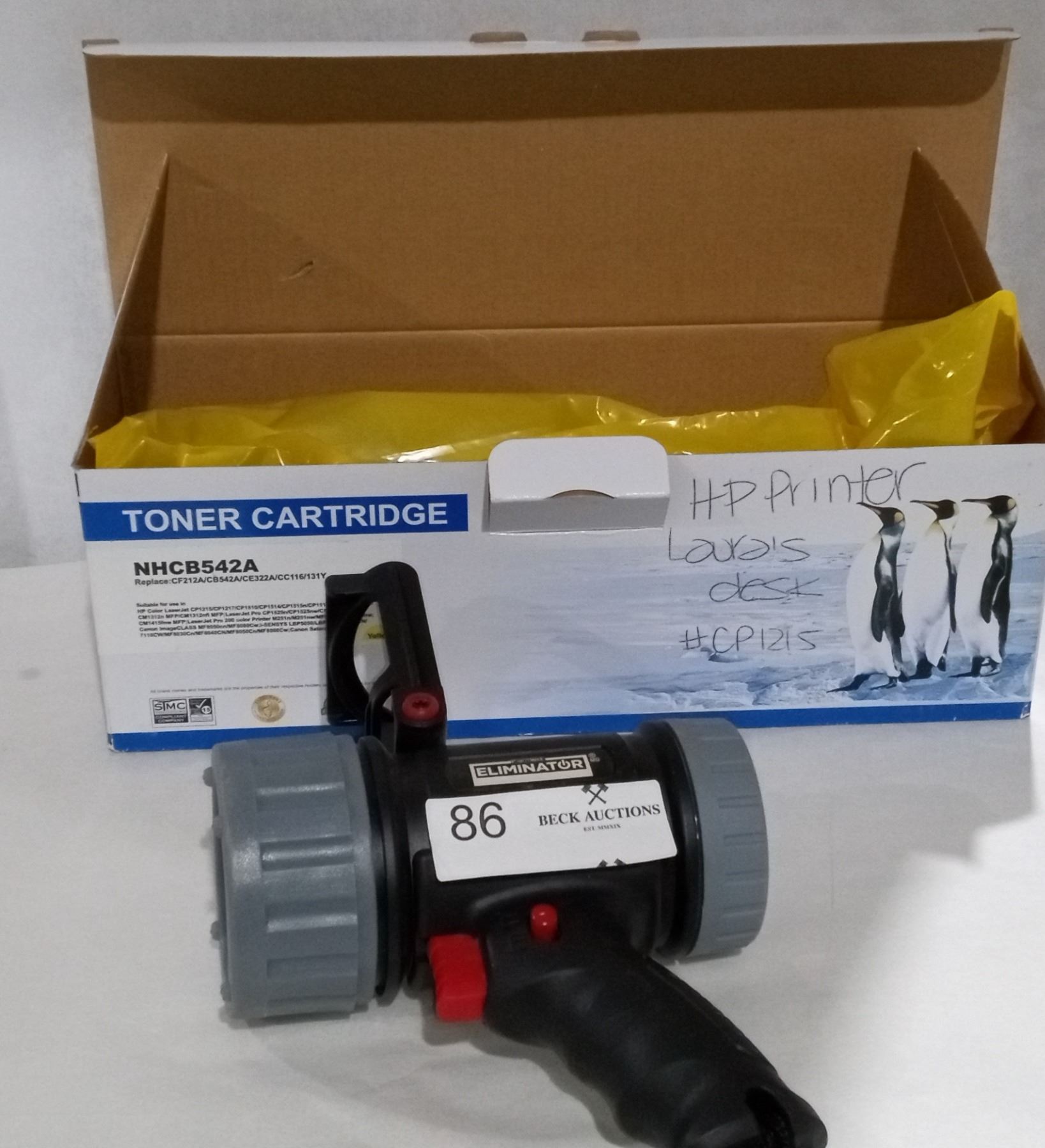 Toner Cartridge, Hand Flashlight, and Light Bulbs