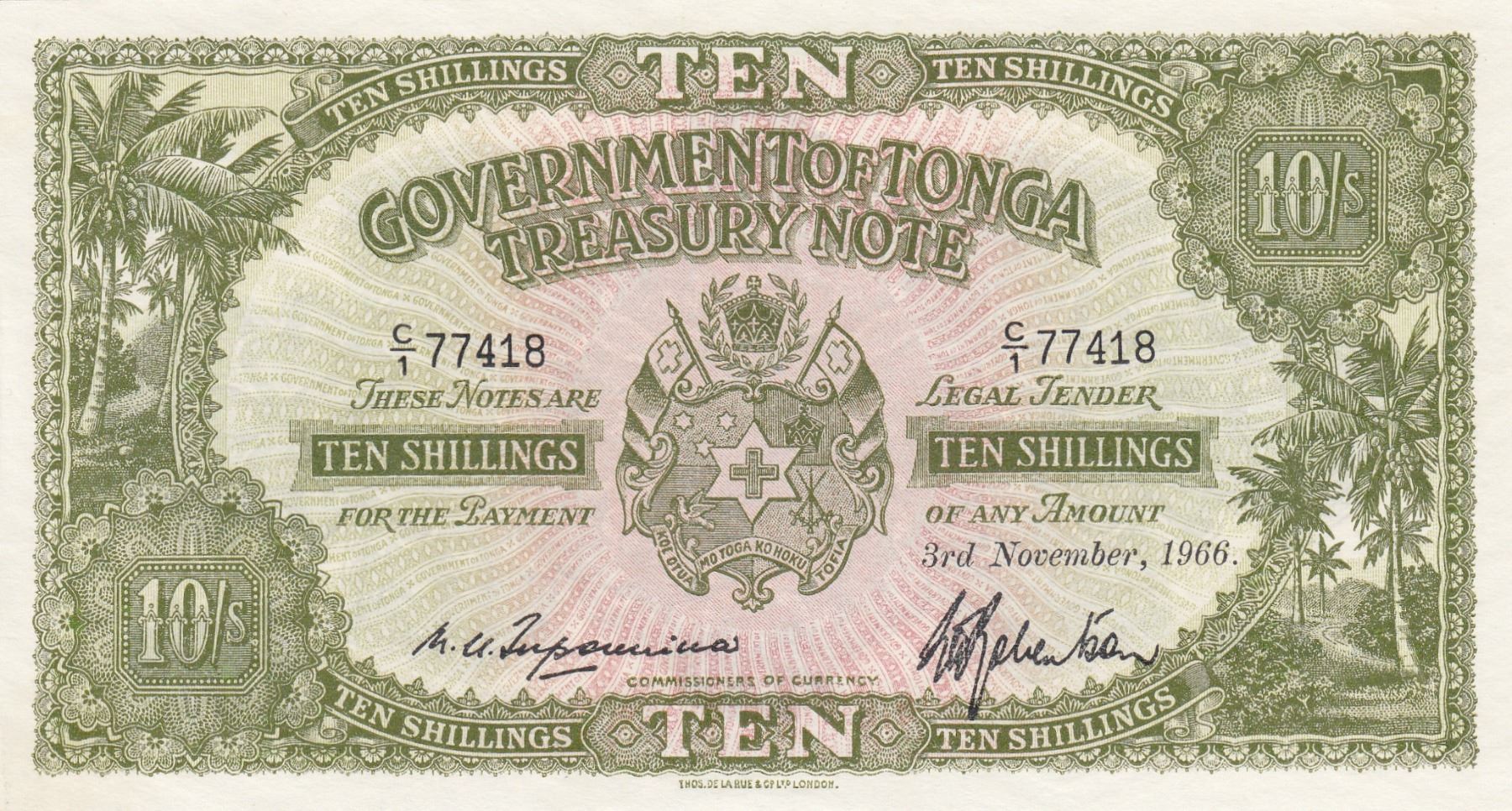 Tonga, 10 Shillings, 1966, UNC, p10ebr/serial number: C/1 77418