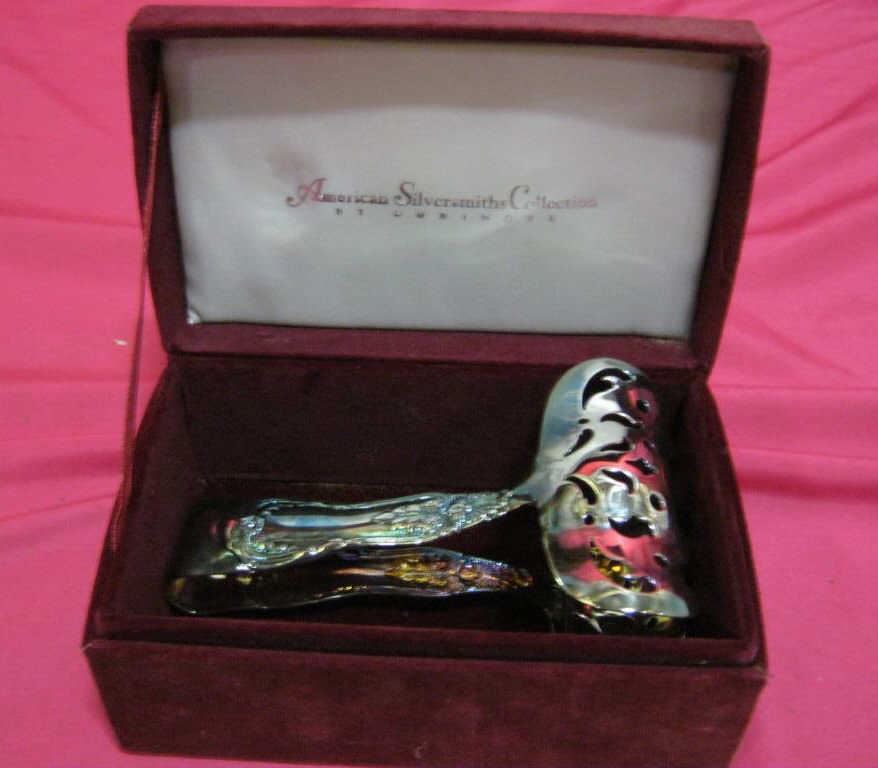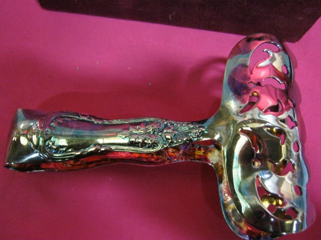 Silver plated tongs a reproduction of Tiffany in red velvet box.... very ornate....