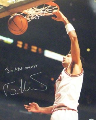 Having been drafted by the NBA's Chicago Bulls in 1990, Toni Kukoc continued to play in Europe, until finally reporting to the Bulls in 1993, when the team had just finished its first three-peat and had lost Michael Jordan to retirement. In the 1995–96 season, Michael Jordan had returned, and the Bulls had acquired an exceptional rebounder, Dennis Rodman, in the offseason. With Pippen still at small forward, coach Phil Jackson saw it best to have Kukoc continue to be a bench player. Kukoc was third on the team in scoring (behind Jordan and Pippen) and was rewarded for his efforts with the NBA Sixth Man of the Year Award. He also assisted the Bulls to a 25-game turnaround and the best record in league history at 72–10, as well as the fourth championship in team history. Kukoc is currently the last player to win the NBA Sixth Man of the Year Award and the NBA title in the same year. Toni Kukoc has hand signed this Chicago Bulls 8x10 Photo with 3X NBA Champs inscription. Leaf Authentics Hologram and Certificate of Authenticity from Athlon Sports.