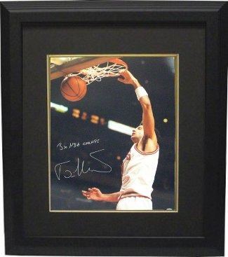 Having been drafted by the NBA's Chicago Bulls in 1990, Toni Kukoc continued to play in Europe, until finally reporting to the Bulls in 1993, when the team had just finished its first three-peat and had lost Michael Jordan to retirement. In the 1995–96 season, Michael Jordan had returned, and the Bulls had acquired an exceptional rebounder, Dennis Rodman, in the offseason. With Pippen still at small forward, coach Phil Jackson saw it best to have Kukoc continue to be a bench player. Kukoc was third on the team in scoring (behind Jordan and Pippen) and was rewarded for his efforts with the NBA Sixth Man of the Year Award. He also assisted the Bulls to a 25-game turnaround and the best record in league history at 72–10, as well as the fourth championship in team history. Kukoc is currently the last player to win the NBA Sixth Man of the Year Award and the NBA title in the same year. Toni Kukoc has hand signed this Chicago Bulls 8x10 Photo with 3X NBA Champs inscription. Leaf Authentics Hologram and Certificate of Authenticity from Athlon Sports. Custom Black Mat and Premium Black Frame as shown.