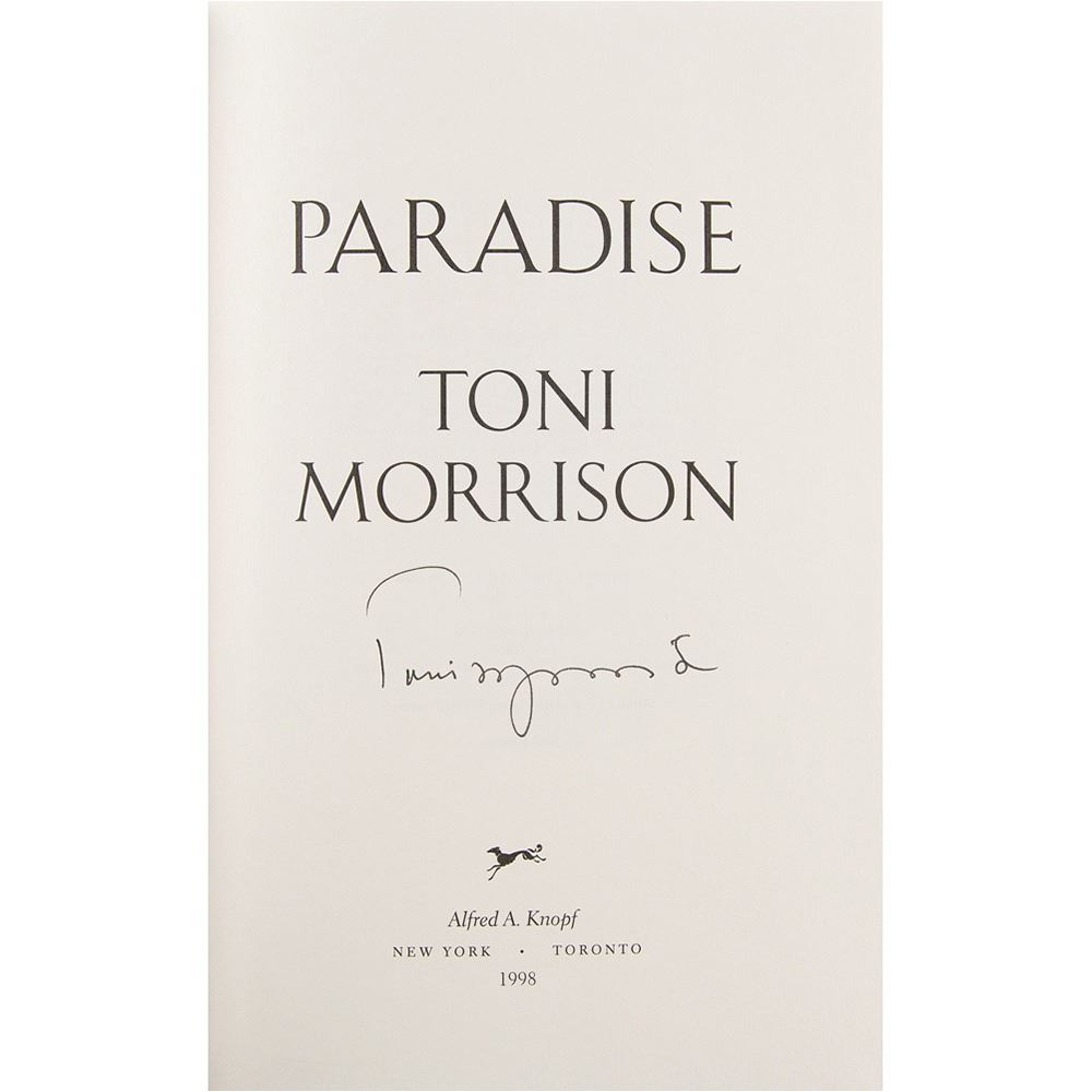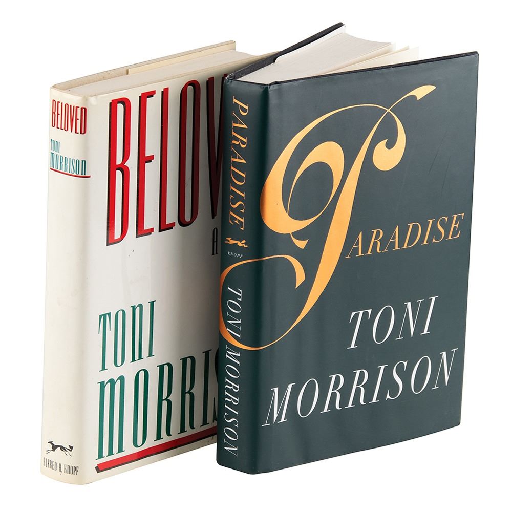 Two first edition books by Toni Morrison—Beloved and Paradise—both hardcovers with dust jackets, both signed on an opening page in black ink by the author. In overall fine condition.