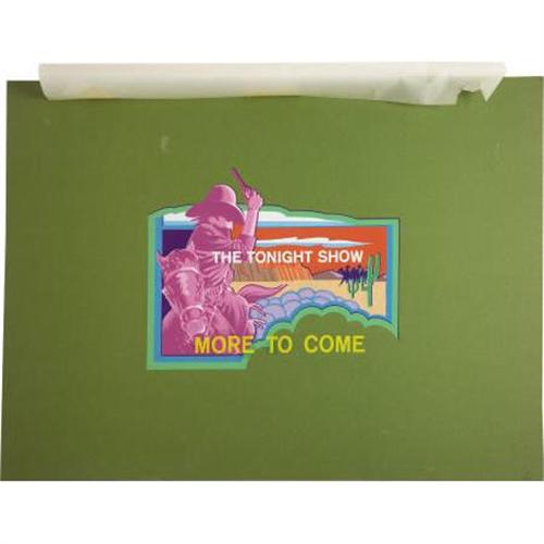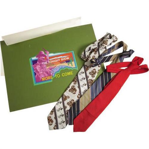 <B>"The Tonight Show" Original Bumper Card and Ed McMahon's Neckties.</B></I> From <I>The Tonight Show Starring Johnny Carson</B></I> (1962-92), a classic "More To Come" art card featuring a pistol-wielding cowboy blazing through the Wild West. These "bumper cards" were seen as the show came out of the commercial break and transitioned back into the program. This is an original, one-of-a-kind hand-painted art piece acquired directly from the NBC art department in 1993. Also included in this lot, three original neckties (one featuring Mickey Mouse circa 1970s) worn by Johnny's sidekick, Ed McMahon. <I>Authenticated by the world's foremost curators of television artifacts, The Comisar Collection of Beverly Hills.</B></I><BR><BR><b>Shipping:</b> Clothing, Costumes & Jerseys (<a target="_blank" href="http://www.heritageauctions.com/common/shipping.php">view shipping information</a>)