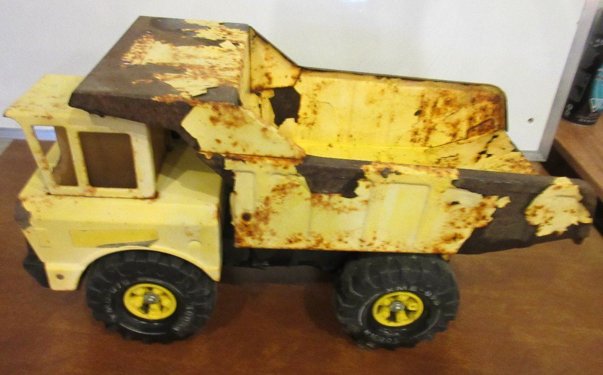Tonka Dump Truck, Grader (no markings), John Deere Tractor, Matchbox K-7 Racing Car Transporter Lesney 1972