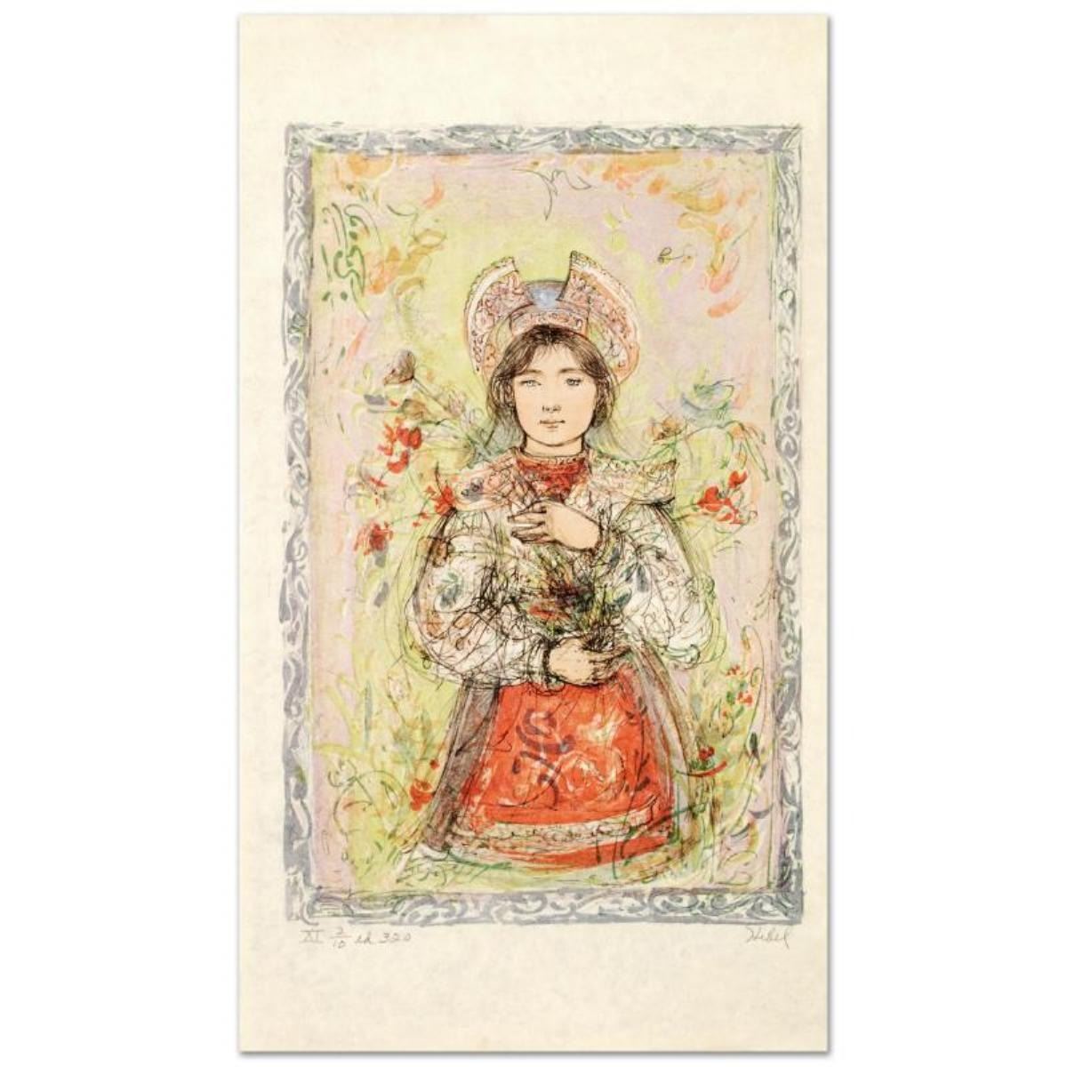 "Tonnette" is a limited edition lithograph on rice paper, numbered and hand signed by Edna Hibel (1917-2014). Includes Certificate of Authenticity! Measures approx. 13" x 22" (with border), 11" x 17" (image).